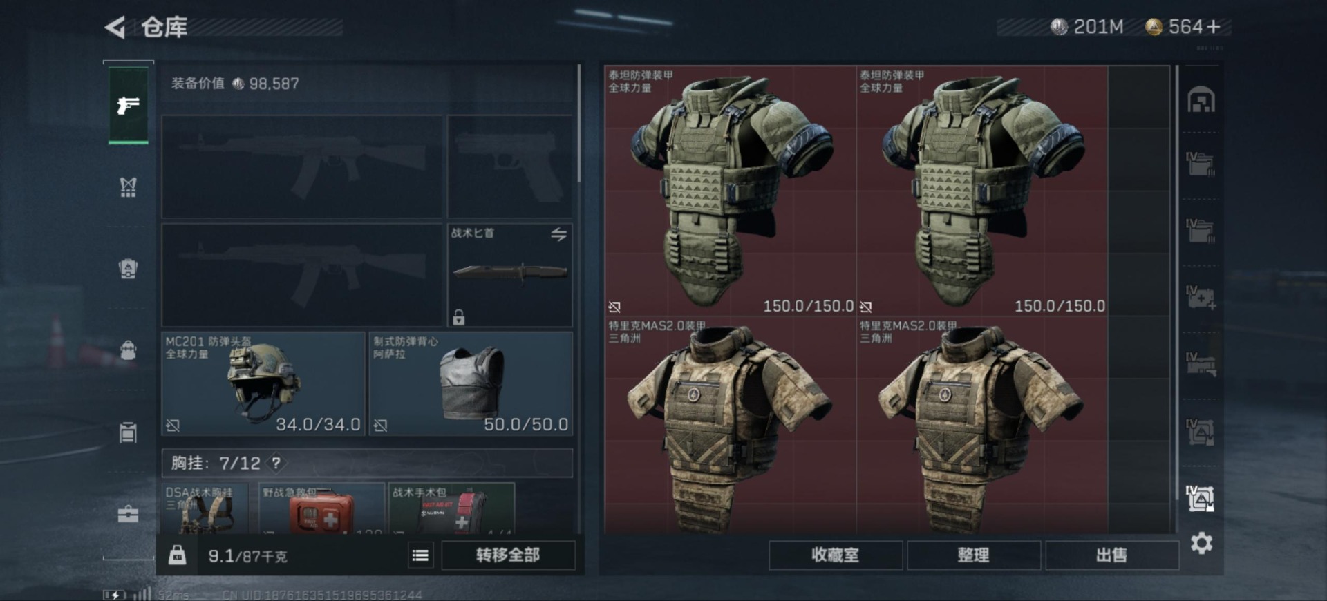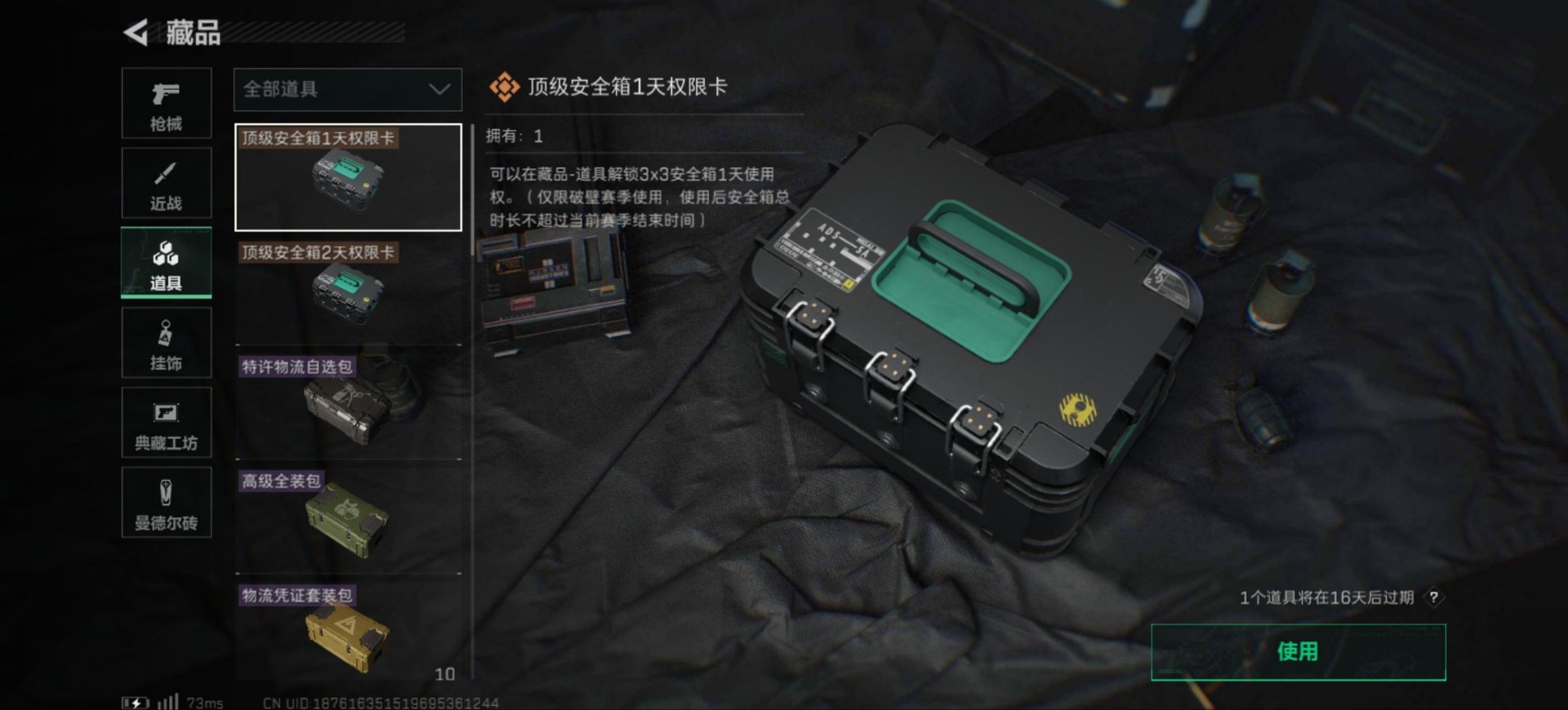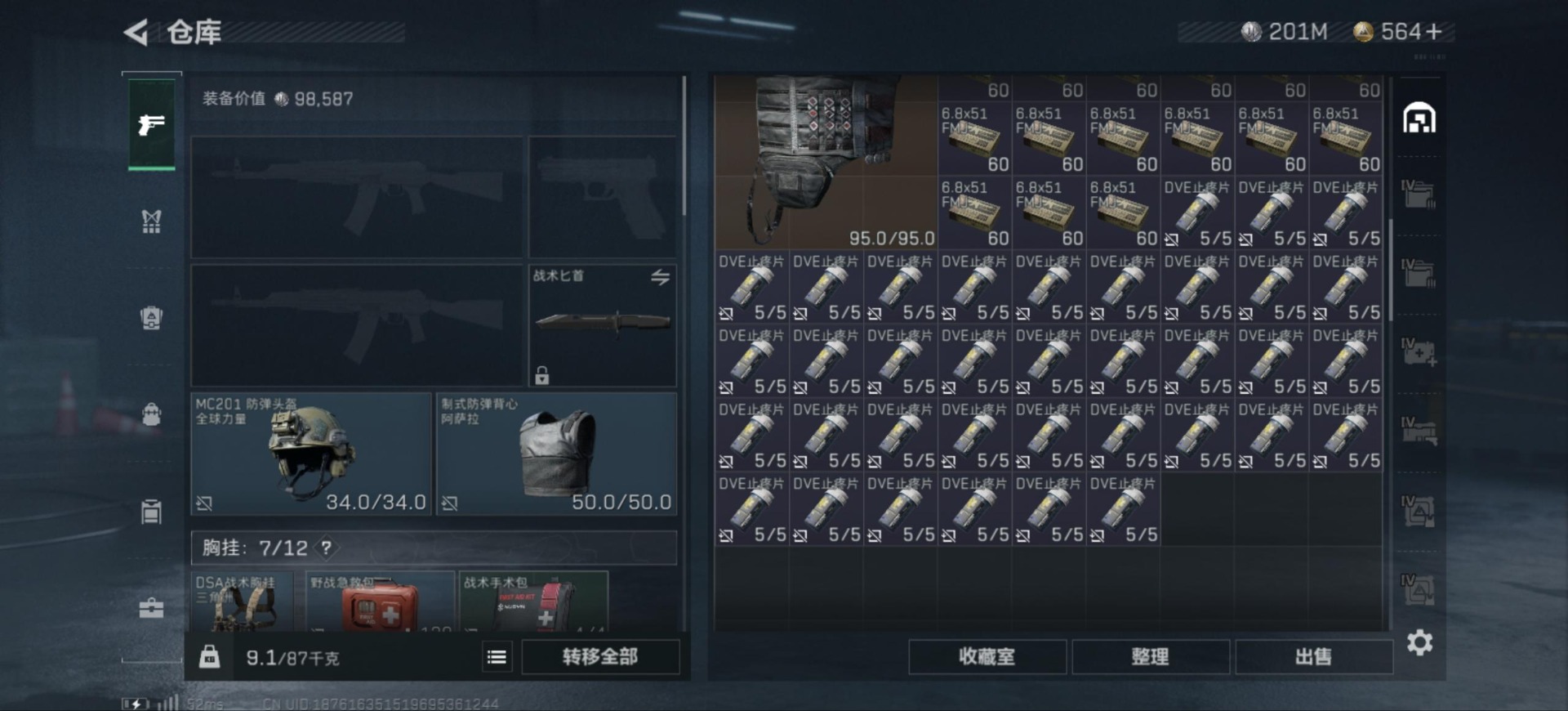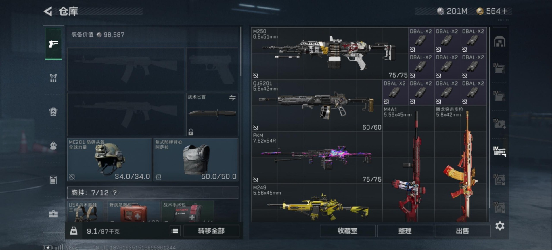 - [11626759]总资产:174.5 7传说枪械 顶级安全箱(3×3)9.15号到期 可二次 可修改实名 优质装备:顶级安全箱(3x3) 烽火地带段位:青铜 全面战场段位:无段位 哈夫币:3.630 传说武器皮肤:M4A1突击步枪-阿米娅,CAR-15突击步枪-阿米娅,复合弓-黑-天际线,AK-12突击步枪-特斯拉线圈,SR-3M紧凑突击步枪-特斯拉线圈,UZI冲锋枪-特斯拉线圈,勇士冲锋枪-能天使-午夜邮差 史诗武器皮肤:MP5冲锋枪-深海恐惧,SV-98狙击步枪-林中猎手,M250通用机枪-囚徒