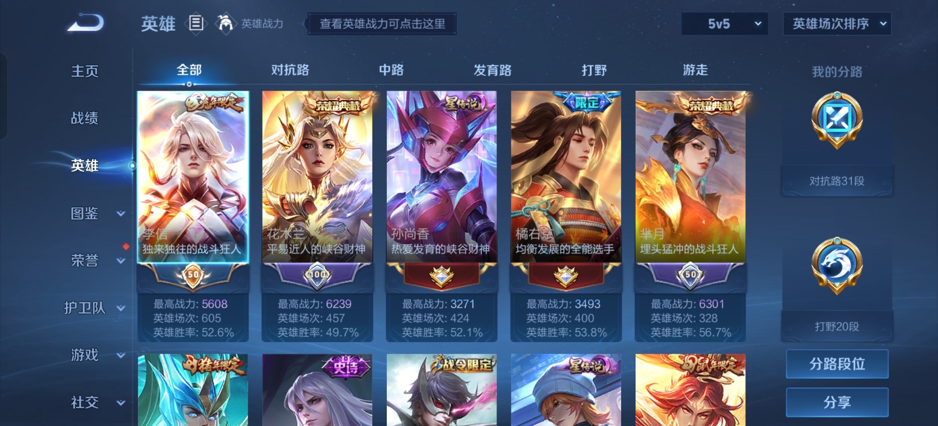 - [12297571]V7 2典藏 3珍品传说 8传说 125英雄 341皮肤 可修改实名 优质装备:鸣剑·曳影,弑枪猎影(韩信典藏),怪盗基德,一念神魔,胖达荣荣,涂山容容 珍品传说:时之奇旅-孙策,兔狲·蓬尾 传说皮:落雪白狼,死亡执政官,幻光神枪 珍宝阁皮:妄想食味,蔷薇恋人 限定皮:愿照·岁时盈(虞姬年限),逐霄战戟,鸣野蒿,白鹤梁神女,遇见飞天,五谷丰年,梁祝,李小龙,永曜之星,圣诞老人,孙行者,百木心枪,玉兔公主,天降福星 史诗皮:鸭鸭历险记-刘禅,器灵·浮梦炉,化蝶舞,星界战将,谪仙醉月,龙之律动,雪豹·霜爪,石田雨龙,百相守梦-周瑜,茶境仙,破空之剑,战舞者,东方月初,蒙犽顽岩魄,琥珀纪元伽罗,蔬乡物语(鲁班七号),百相守梦-百里守约,百相守梦-黄忠,织梦人,紫霞仙子,特工魅影,江河有灵,雪夜绮愿(周瑜),魅语,百解令(蒙犽),高渐离燃音魔法,蒙恬荣光圣徽,偶像歌手,白蛇,电玩·爆裂旋风,末日机甲-吕布,猫狗日记-孙策,乱世虎臣,节奏热浪,女仆咖啡,摇滚巨星,水果甜心,天才门将,星夜王子,心灵骇客,功夫厨神,德古拉伯爵,暗隐猎兽者,幽灵船长,鬼剑武藏,心灵战警,乐园奇幻夜,舞动绿茵,地狱岩魂,纤云弄巧,拒霜思,缤纷独角兽,乘风破浪,逐浪之夏,水晶猎龙者,曙光守护者,金属风暴,原初追逐者,圣诞狂欢,圣诞恋歌,鹰眼统帅,王者之锤,魅力维加斯,未来纪元-赵云