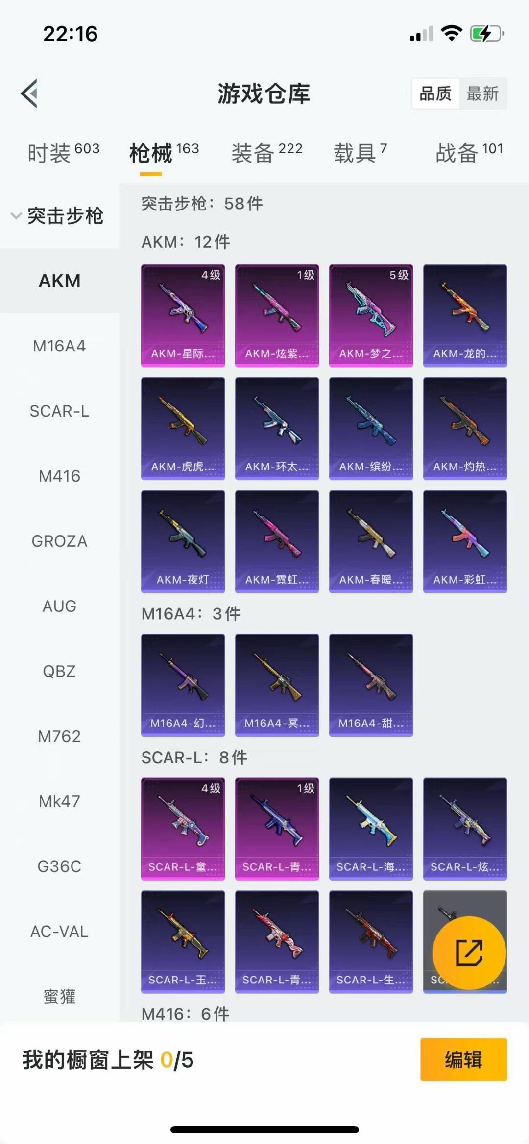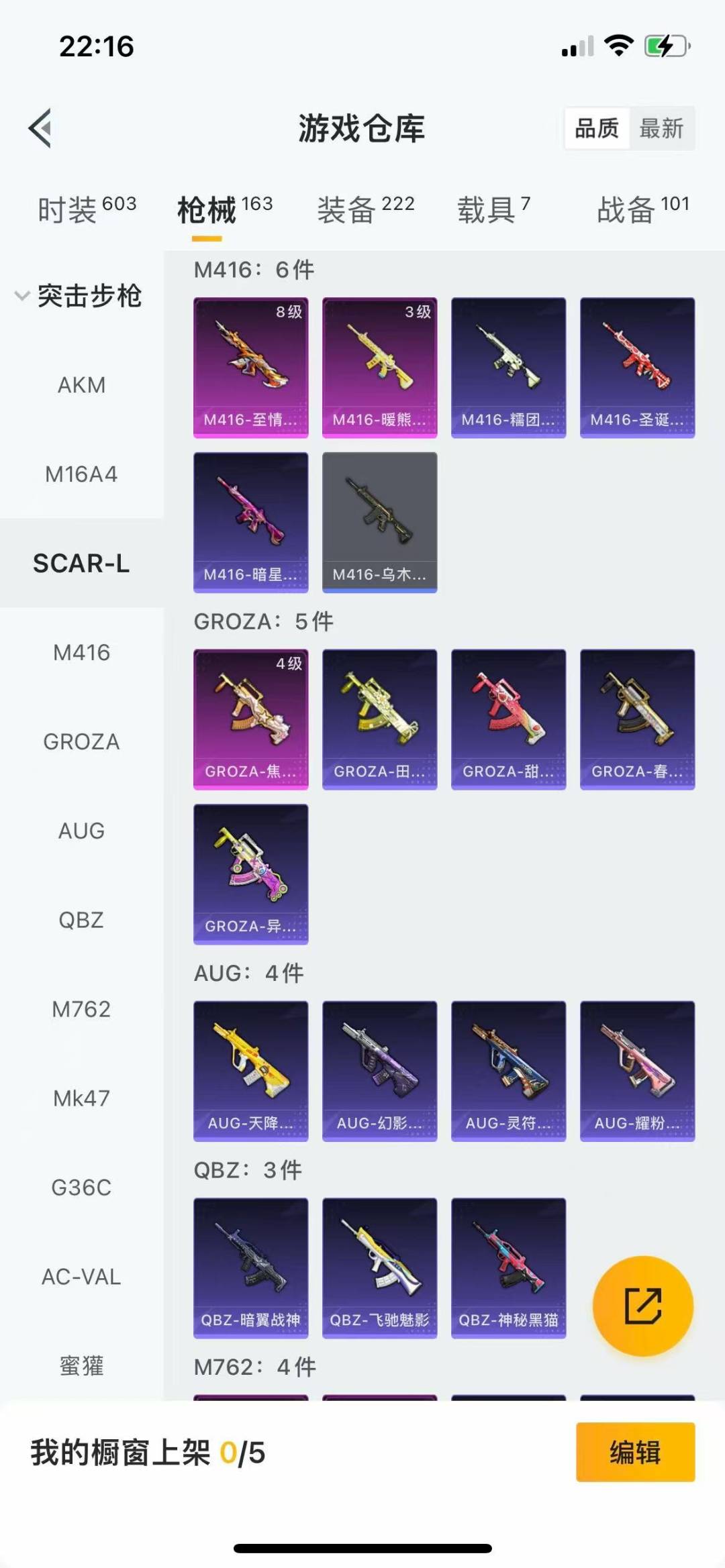AKM-梦之光华,AKM-炫紫旋律,AKM-星际浪客,SCAR-L-童趣迷兔,SCAR-L-青春物语,M416-至情至圣,M416-暖熊萌萌,GROZA-焦糖拿铁,M762-冷魅冰骑,M762-甜心娃娃,Kar98K-巳巳如意,M24-暗星紫秘,UMP45-雪国精灵,UMP45-玉魂晶魄