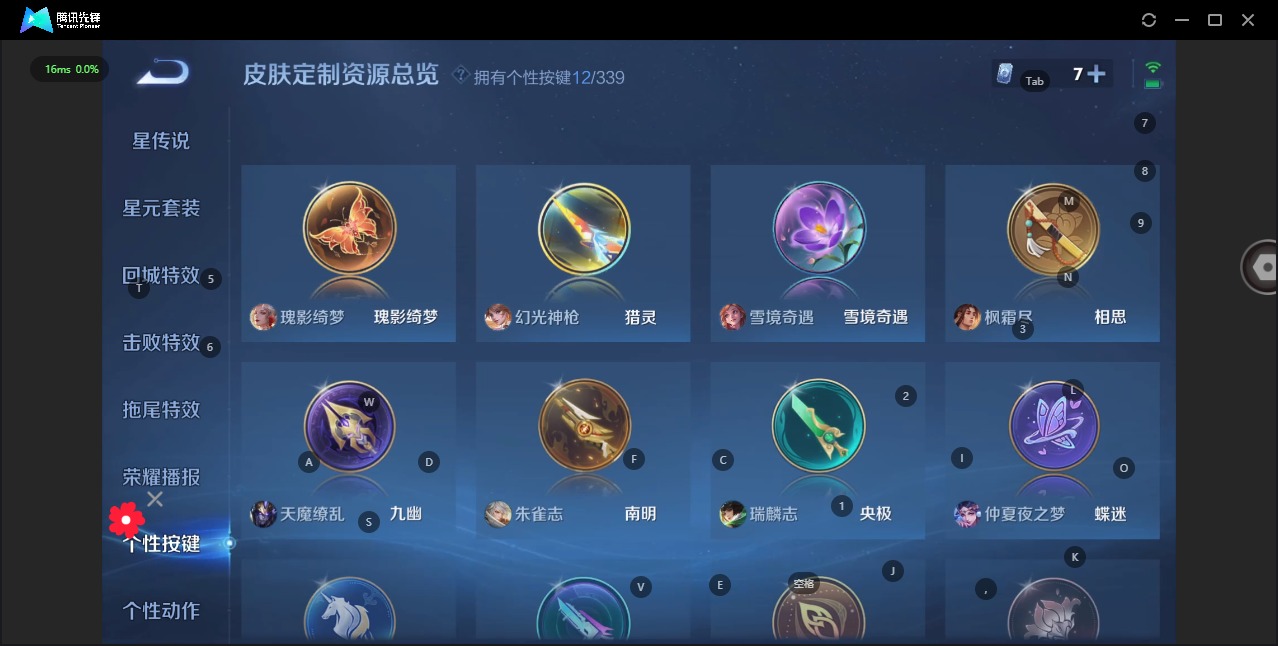 夏侯惇匿光决锋者,苏烈玄武志,赵云百木心枪,后羿辉光之辰,裴擒虎天狼狩猎者,上官婉儿梁祝,花木兰瑞麟志,花木兰青春决赛季,马可波罗深海之息,桑启鸣野蒿,猪八戒猪悟能,孙悟空至尊宝,孙悟空美猴王,韩信傲雪梅枪,韩信逐梦之影,百里守约朱雀志,王昭君凤凰于飞,关羽武圣,关羽冰锋战神,橘右京枫霜尽