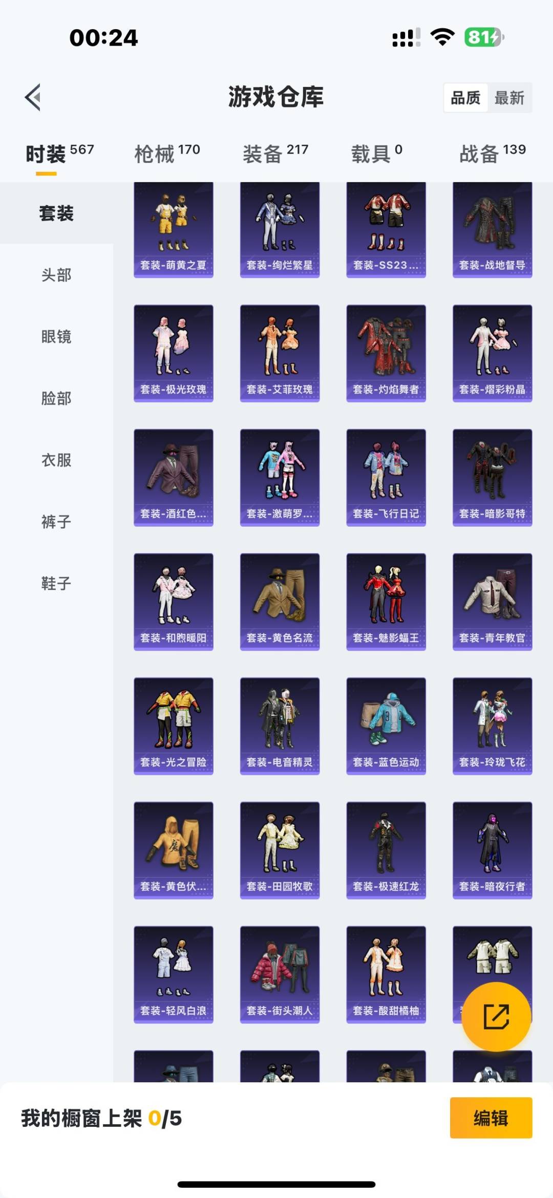 [11824070]5粉装 3特效枪 10印记 可二次 可修改实名 身法装备:暗影哥特(红眼罩) 优质装备:蝶舞迷情,AMR炫光之旅,DP-28-千金淑猫,千金淑猫,Kar98K-巳巳如意 热门装扮:旋转彩虹,暗夜鎏金,未来歌姬,暗夜行者,激萌罗小黑,暴走罗小黑,暗夜魅影 六级特效枪:六级DP-28-千金淑猫 五级特效枪:五级Kar98K-巳巳如意,五级AMR-炫光之旅 紫色装扮:田园牧歌,轻风白浪,和煦暖阳,SS22特训,SS23特训,幻彩翩翩,灵蜜圈圈,妙红点点,香榭午后,白兰地假日,娇憨猪猪,墨染幽兰,酸甜橘柚,暖心橘喵,萌趣咩咩,SS21特训,极光玫瑰,艾菲玫瑰,绚烂繁星,熠彩粉晶,SS31特训套装,SS5特训,人气偶像,冰川特警,冷焰舞者,北国孤狼,SS30特训套装,SS33特训套装,SS20特训,猎梦纪元,SS19特训,软羊咩咩,吉莉礼服,甜心亚梦,虚音幻奏,电音精灵,SS18特训,都市魅力,酒红色名流,野性战心,长空猛禽,雪山精英,霓虹街区,青年教官,蓝彩潮人,蓝色守护者,蓝色运动,街头潮人,跃动心情,飞行日记,魅力单车,鹤鸣,麻辣教官,黄色伏地魔,黄色名流,黄色运动,黎明保卫者,黑色伏地魔,龙的传人,龟仙人,极速红龙,柠萌假日,橘黑制服,沙漠兵团,海岛探路者,深蓝色名流,滨海假日,幻影武者,夏日音浪,完美偶像,帅气教官,幻世战舞者,战地督导,探宝勇士,湖蓝色名流,滨海厨神,绮丽涂鸦,疯狂小兔子,白熊同盟,白色伏地魔,破晓战魂,破蛋小黄鸡,甜蜜告白,空岛之星,空投萌叽,竞技勇士朋克,竞技达人朋克,红色运动,王牌教练,牛气冲天,灰色格斗者,灼焰舞者,炫蓝之夏,热血青春,牛气满满,猛禽,特殊使命,特训学院,狂沙舞者,猎鹰,SS29特训,SS28特训,光矢逐梦,鱼渊荷华,玉兔迎春,燕燕于飞,巳巳如意,都市丽猫,竞技名士,摩登魅猫,暗影哥特(红眼罩),银尘,惊鸿侠骨,神气柴柴,懵萌河马,SS24特训(SS24特训套装),SS25特训,绝对偶像,锦衣飞扬,粉红小猪,SS27特训,浪漫天命,小丑鱼,SS26特训,SS6特训,SS7特训,顽皮玉兔,玲珑飞花,SS8特训,大橘大利,星渊小夜曲,耀粉歌者,蓝冰羽,紫幽梦,SS32特训服(SS32特训套装),青玉碎影,绯格组合,萌黄之夏,恋语绒绒,鲛海歌灵,魅影蝠王,青丘仙客,光之冒险 优质战备:千金淑猫降落伞,幻星舰长飞行器,临安公主降落