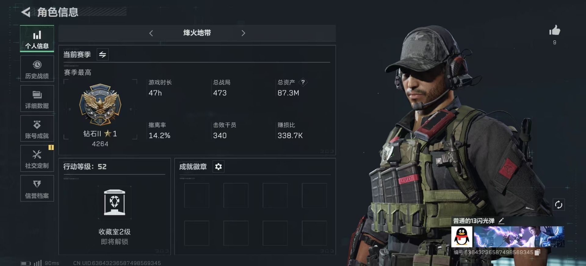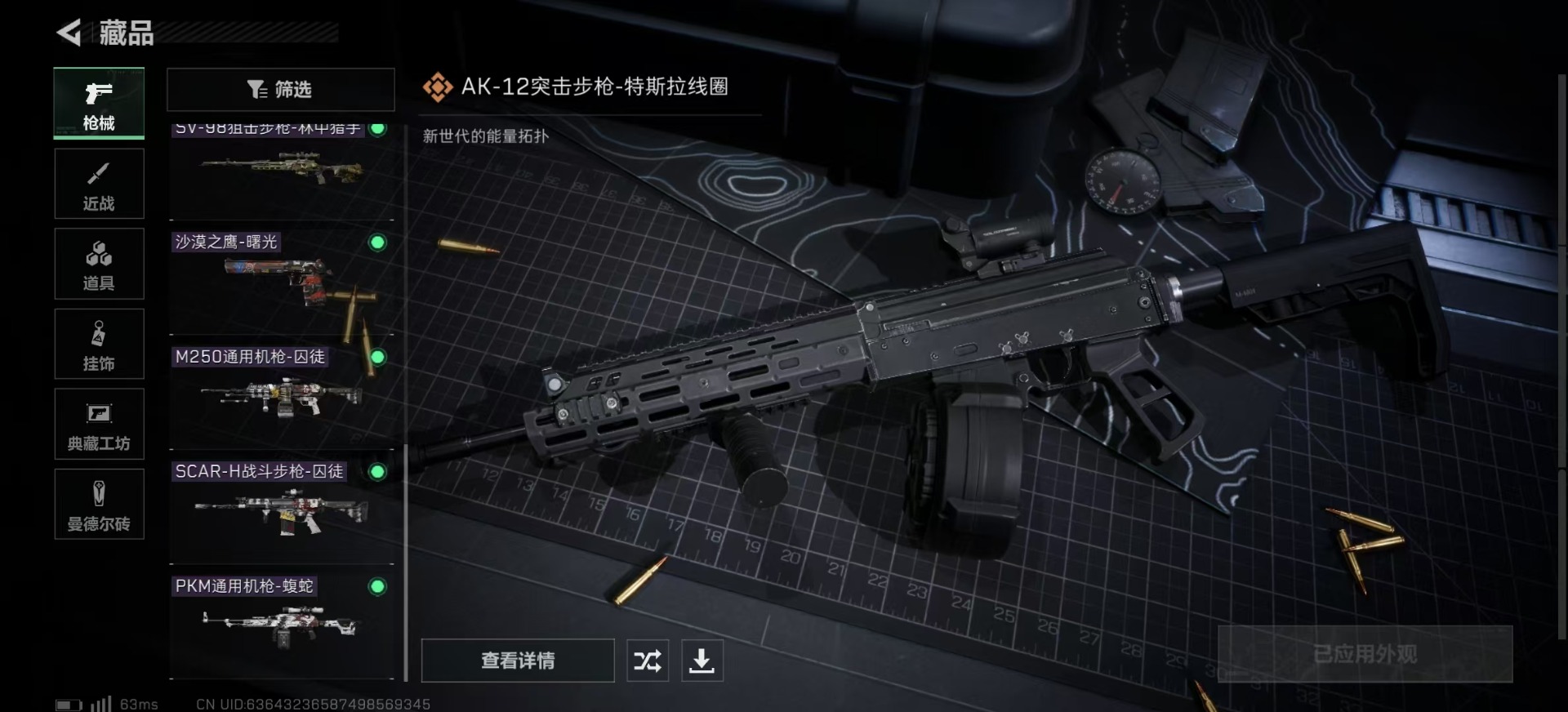 [11824104]总资产:87.3M 5传说枪械 哈夫币:84.999K 可二次 可修改实名 烽火地带段位:钻石 全面战场段位:无段位 传说武器皮肤:AK-12突击步枪-特斯拉线圈,SR-3M紧凑突击步枪-特斯拉线圈,UZI冲锋枪-特斯拉线圈,勇士冲锋枪-能天使-午夜邮差,Vector冲锋枪-能天使-午夜邮差 史诗武器皮肤:PKM通用机枪-蝮蛇,M16A4突击步枪-竞赛选手,SV-98狙击步枪-林中猎手,M250通用机枪-囚徒,SCAR-H战斗步枪-囚徒,沙漠之鹰-曙光