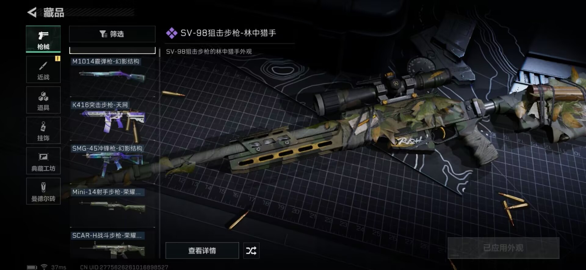 [11824106]总资产:78.5 可二次 可修改实名 烽火地带段位:青铜 全面战场段位:无段位 哈夫币:61.837 史诗武器皮肤:M700狙击步枪-蝮蛇,SV-98狙击步枪-林中猎手