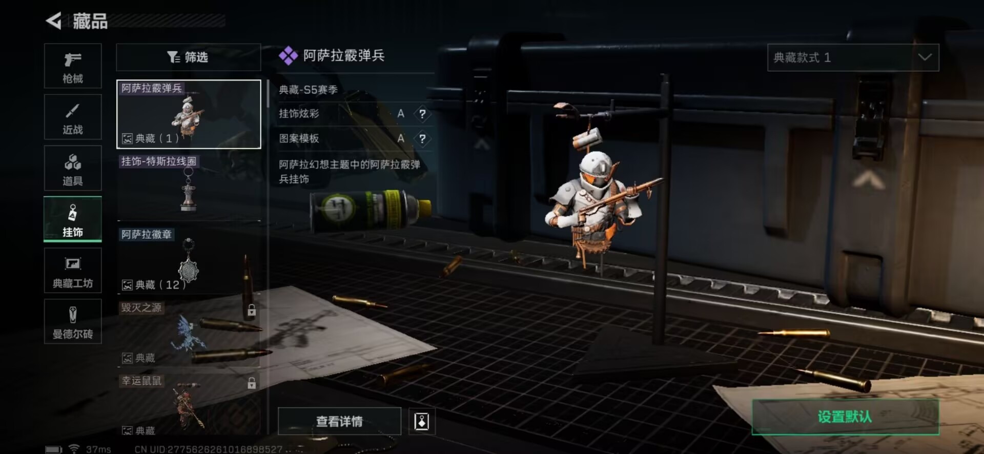 - [11684696]总资产:67.4 1近战传说 6传说枪械 顶级安全箱(3×3)9.15号到期 段位:无段位 可二次 可修改实名 烽火地带段位:青铜 全面战场段位:无段位 哈夫币:5.933 传说武器皮肤:近战-黑海,QJB201轻机枪-风林火山,SCAR-H战斗步枪-水墨云图,QJB201轻机枪-黑海,M4A1突击步枪-蚀金玫瑰,CAR-15突击步枪-黑鹰坠落 史诗武器皮肤:PKM通用机枪-荒野求生,SG552突击步枪-深海恐惧,SV-98狙击步枪-林中猎手,PTR-32突击步枪-英雄,PSG-1射手步枪-无垢,SCAR-H战斗步枪-囚徒