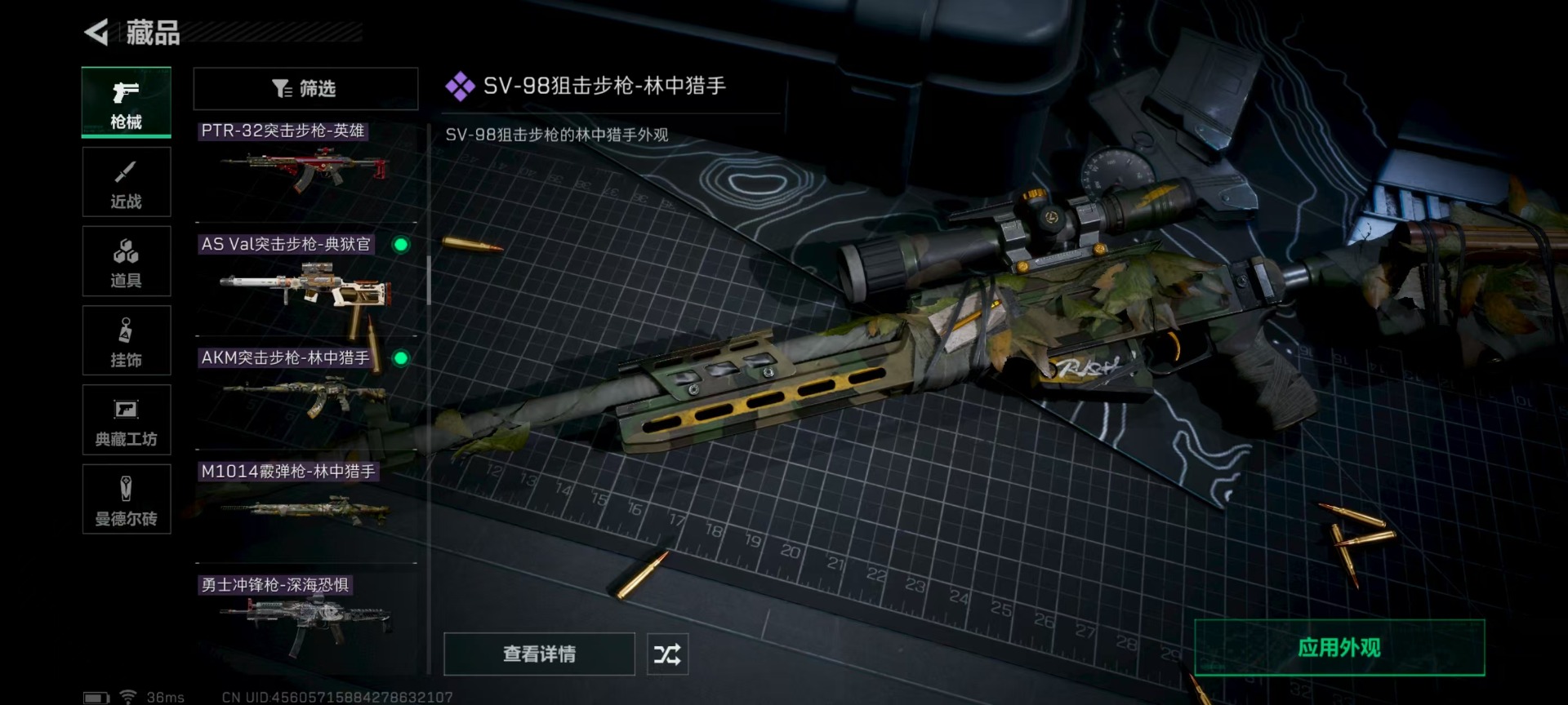 - PX_2100818-??/枪械19/装备655/载具3/战备295/王牌印记22/热力值155949/五级AKM-梦之光华/七级SCAR-L-青春物语/六级GROZA-旋转彩虹/七级AUG-星之彼岸/七级Vector-环太平洋/五级AKS-74U-信仰神谕/七级P90-粉樱探戈/五级Kar98K-巳巳如意/五级Mk14-精灵梦叶罗丽/一级AMR-炫光之旅/五级AMR-智耀战神/二级M417-第五