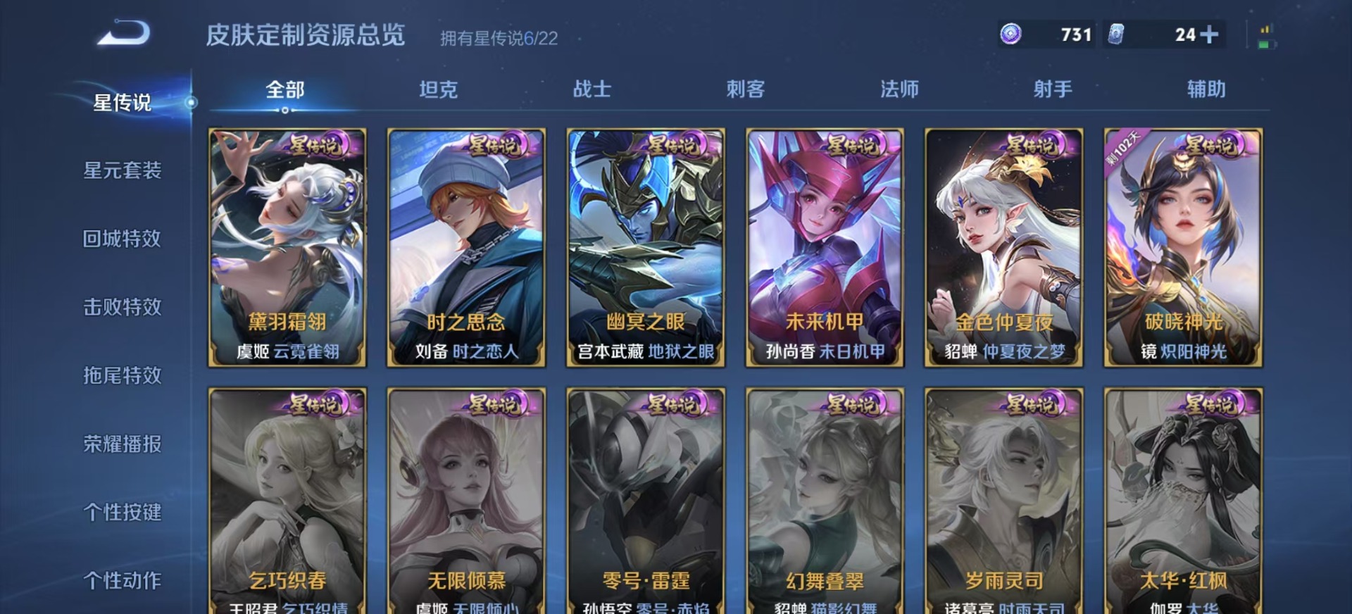 铠绛天战甲,刘备时之恋人,赵云乘龙·铭钟鼎,孙膑小动物乐团,赵云淬星耀世,干将莫邪久胜战神,小乔音你心动,干将莫邪画中仙,李信一念神魔,孙策末日机甲,孙策挚爱之约,孙策乘龙·淬吴钩,达摩黄金狮子座,孙尚香乘龙·问璇玑,海月金乌负日,露娜霜月吟,吕布曦玄引,镜炽阳神光,周瑜音你心动,亚连落雪白狼,安琪拉追逃游戏,艾琳觅芳踪,狄仁杰神器·狴犴令,嬴政玄雷天君,张良黄金白羊座,孙悟空零号·赤焰,曜云鹰飞将,曜李逍遥,马超无双飞将,百里守约碎云,墨子黄金天蝎座,澜逐花归海,蔡文姬花朝如约,虞姬云霓雀翎,貂蝉曦玄引,云缨幻光神枪
