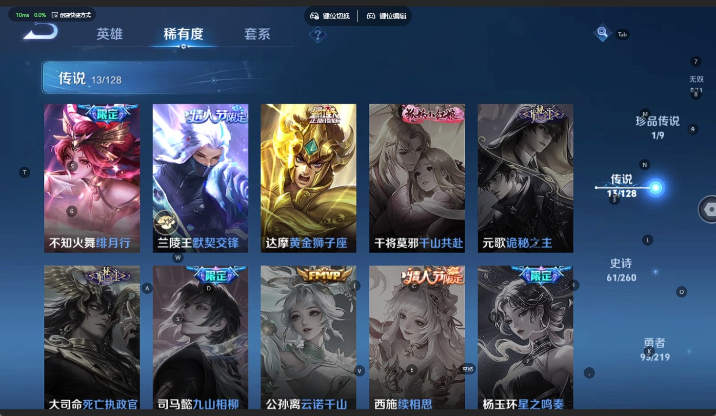 - [11297717]V8 20传说 123英雄 258皮肤 可修改实名 优质装备:绛天战甲(鸡嘴战神),地狱之眼,胖达荣荣,乞巧织情,电玩·雷克斯,鹤归松栖(云缨),惊梅引,澜逐花归海,金乌负日,云中君群星魔术团 传说皮:貂蝉曦玄引,幻光神枪 珍宝阁皮:妄想食味 限定皮:愿照·九州拓(澜年限),愿照·岁时盈(虞姬年限),愿照·众生和(妲己年限),愿照·千秋盛(女娲年限),鸣野蒿,太华(伽罗年限),时之彼端,白晶晶,至美·乘鲤谣,遇见飞天,青龙志(铠年限),岱宗(典韦年限),李小龙,辉光之辰,霸王别姬-虞姬,默契交锋-兰陵王 史诗皮:鸭鸭历险记-刘禅,器灵·浮梦炉,化蝶舞,星界战将,龙之律动,茶境仙,破空之剑,涂山红红,东方月初,埋骨钱,怒海争锋,上官婉儿群星魔术团,蔬乡物语(鲁班七号),百相守梦-黄忠,紫霞仙子,黄金分割率,特工魅影,千年之狐,浮梦罗烟,江河有灵,百解令(蒙犽),高渐离燃音魔法,蒙恬荣光圣徽,偶像歌手,魅语,晚萤,猫狗日记-大乔,节奏热浪,修罗,摇滚巨星,水果甜心,绅士熊喵,心灵骇客,功夫厨神,幽灵船长,鬼剑武藏,心灵战警,地狱岩魂,纤云弄巧,拒霜思,乘风破浪,逐浪之夏,水晶猎龙者,曙光守护者,箭羽风息,金属风暴,圣诞狂欢,鹰眼统帅,魅力维加斯,赏金猎手,滕王阁序,未来纪元-赵云