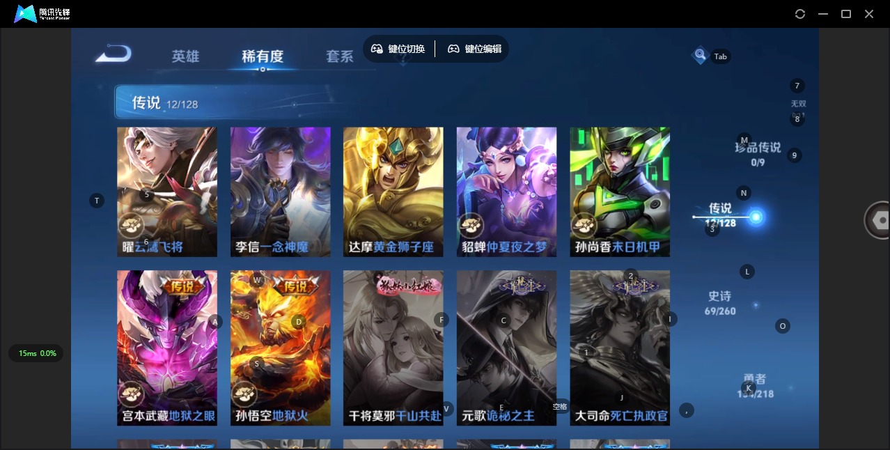- [11854976]V6 1无双 2传说 118英雄 125皮肤 可修改实名 优质装备:天机白泽,绛天战甲(鸡嘴战神),一念神魔,涂山容容 珍宝阁皮:蔷薇恋人 限定皮:李小龙 史诗皮:龙之律动,戍鼓铭心,女仆咖啡,水果甜心,暗隐猎兽者,鬼剑武藏,地狱岩魂,纤云弄巧,乘风破浪,逐浪之夏,鹰眼统帅,暗夜贵公子,魅力维加斯,未来纪元-赵云