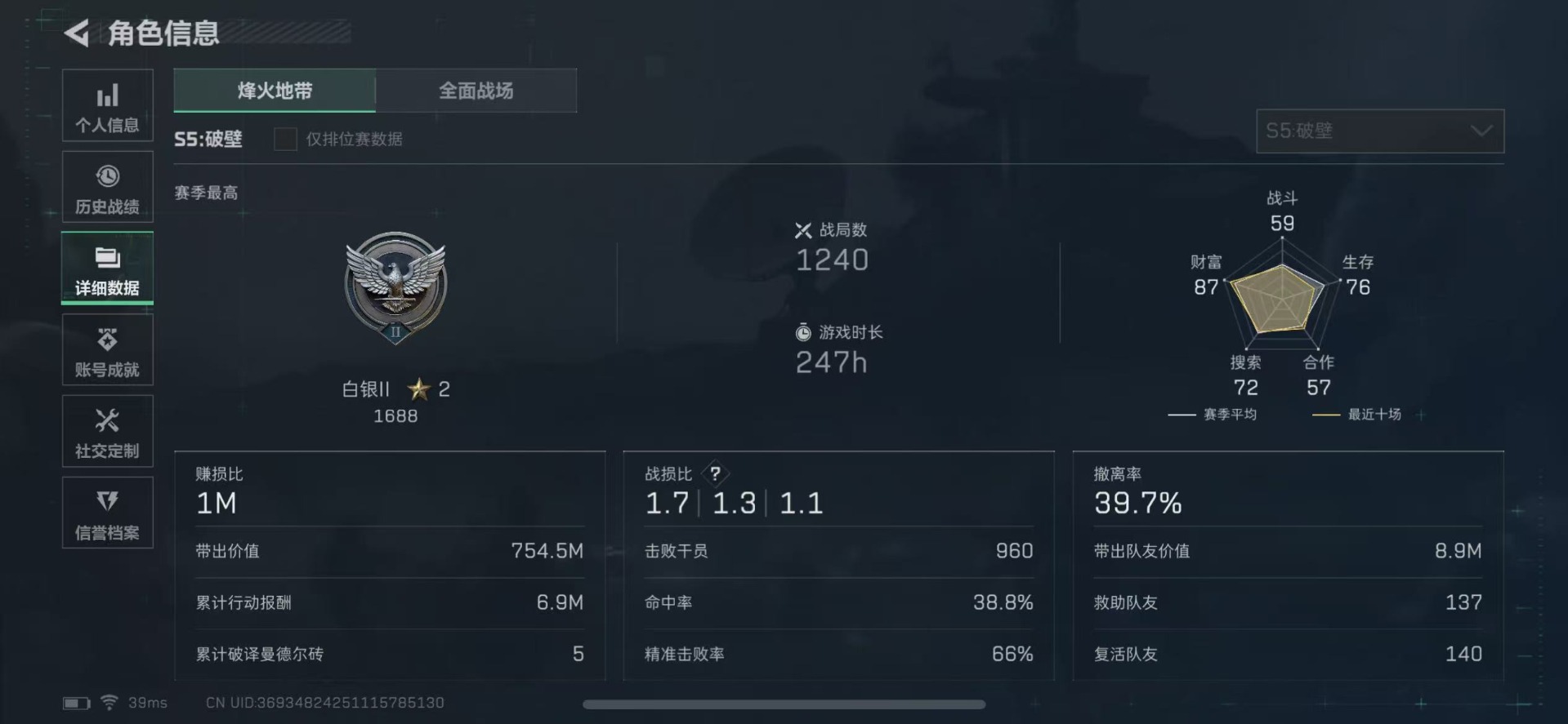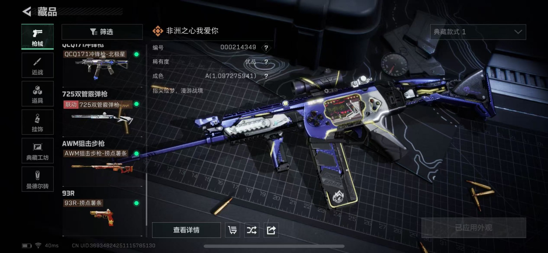 [11830926]总资产:553.8M 1近战传说 16传说枪械 哈夫币:91.426K 可二次 可修改实名 优质装备:近战-北极星,SCAR-H战斗步枪-电玩高手,顶级安全箱(3x3) 烽火地带段位:白银 全面战场段位:尉官 传说武器皮肤:UZI冲锋枪-特斯拉线圈,AWM狙击步枪-捞点薯条,腾龙突击步枪-捞点薯条,93R-捞点薯条,AK-12突击步枪-特斯拉线圈,SR-3M紧凑突击步枪-特斯拉线圈,勇士冲锋枪-能天使-午夜邮差,Vector冲锋枪-能天使-午夜邮差,K437突击步枪-北极星,QCQ171冲锋枪-北极星,725双管霰弹枪-送葬人-无题密令,M4A1突击步枪-阿米娅,CAR-15突击步枪-阿米娅,AK-12突击步枪-夜鹰