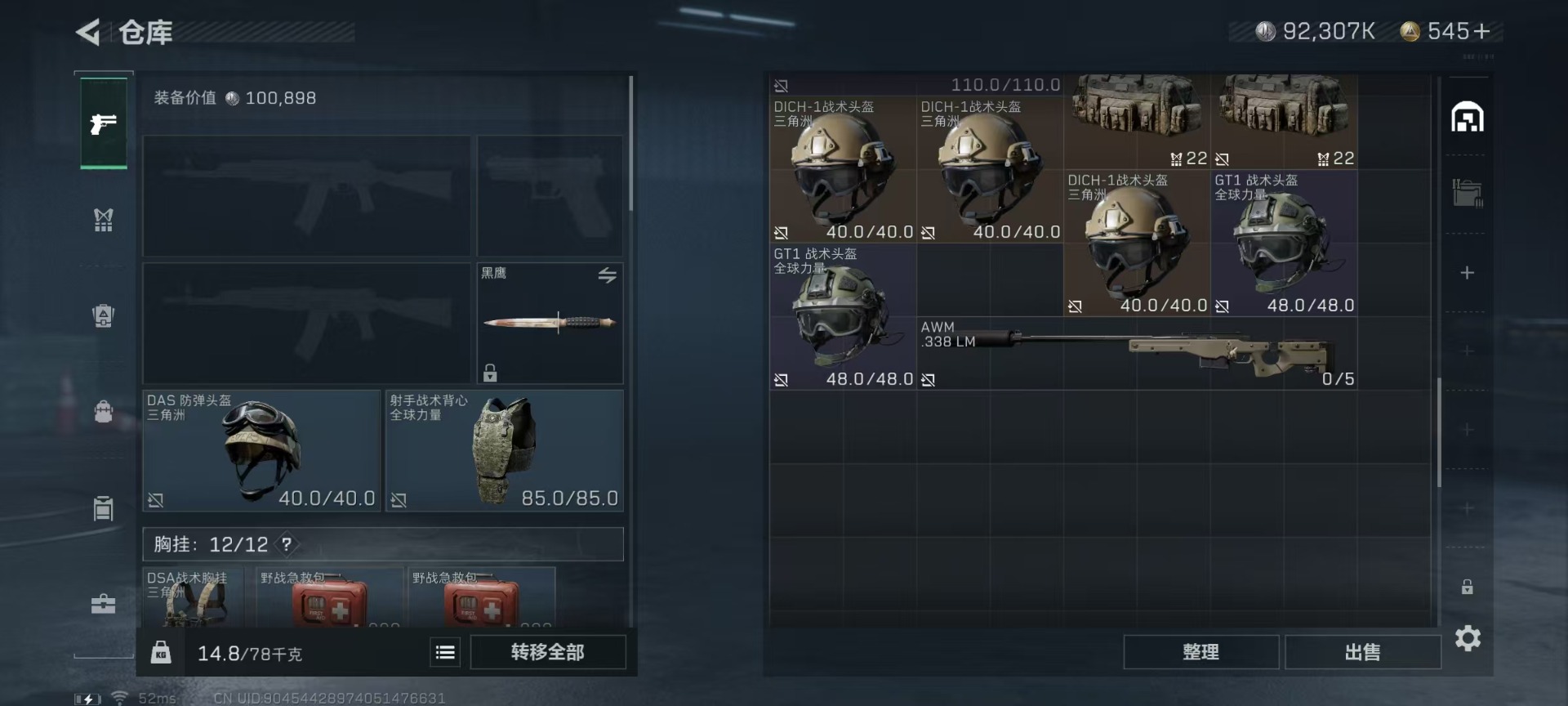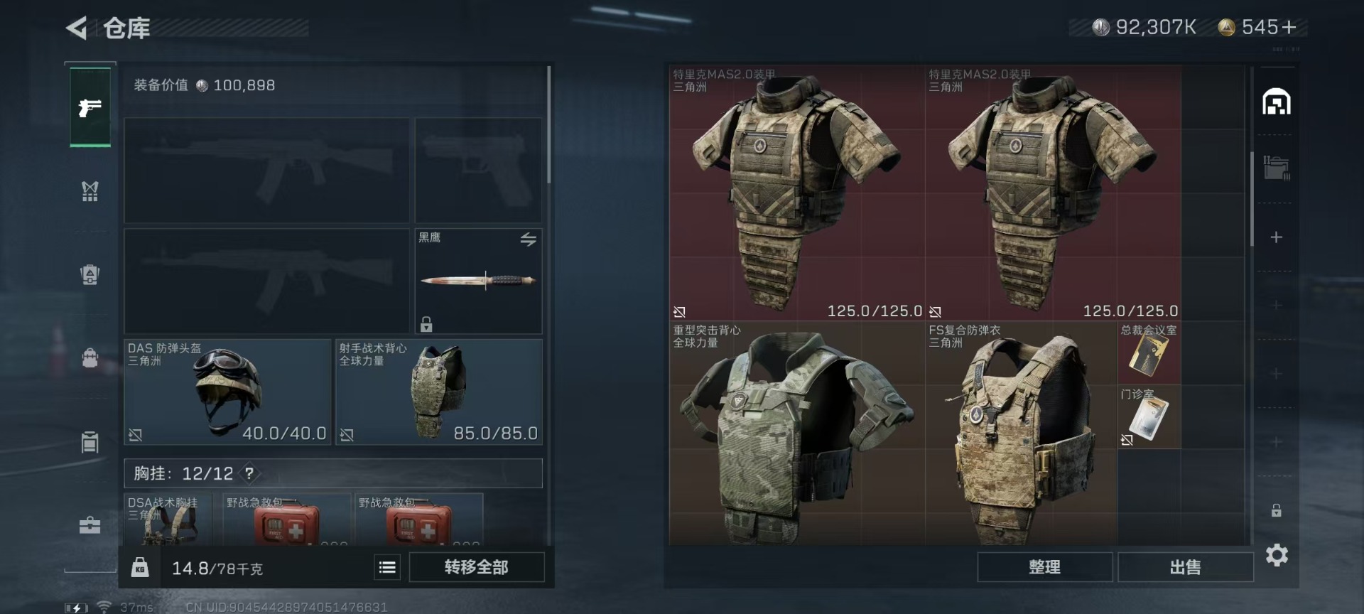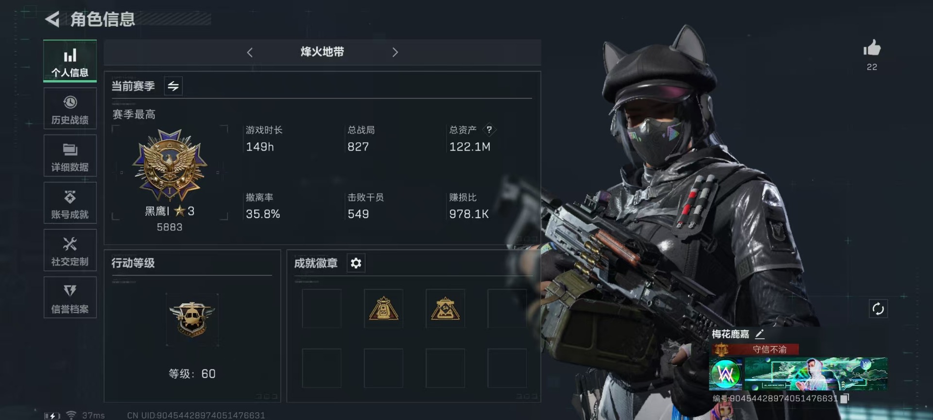 [11832116]总资产:122.1M 1干员外观 9传说枪械 哈夫币:92.307K 顶级安全箱(9.15到期) 可二次 安全保护中 可修改实名 优质装备:顶级安全箱(3x3) 烽火地带段位:黑鹰 全面战场段位:列兵 传说武器皮肤:SMG45冲锋枪-骑士,AWM狙击步枪-捞点薯条,腾龙突击步枪-捞点薯条,93R-捞点薯条,SR-3M紧凑突击步枪-特斯拉线圈,复合弓-黑-天际线,725双管霰弹枪-送葬人-无题密令,M4A1突击步枪-阿米娅,AK-12突击步枪-夜鹰 史诗武器皮肤:SR-3M紧凑突击步枪-英雄,G3战斗步枪-战场英杰,SG552突击步枪-尖端治疗,M1014霰弹枪-林中猎手,AS Val突击步枪-尖端治疗,M700狙击步枪-守夜人,Ash-12战斗步枪-守夜人,SR-25射手步枪-尖端治疗,MP5冲锋枪-深海恐惧,AKM突击步枪-林中猎手,M250通用机枪-囚徒,SV-98狙击步枪-林中猎手,SV-98狙击步枪-囚徒,SVD狙击步枪-暗夜猎手,SCAR-H战斗步枪-囚徒,腾龙突击步枪-无垢,MP7冲锋枪-无垢,PSG-1射手步枪-无垢,SVD狙击步枪-荒野求生,SR-3M紧凑突击步枪-荒野求生,QBZ95-1突击步枪-曙光,沙漠之鹰-曙光,S12K霰弹枪-曙光,QSZ92G-风林火山,ASh-12战斗步枪-刀锋 干员外观:露娜-黑·天际线