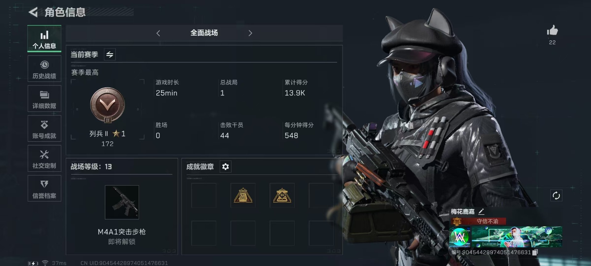 - PX_2101091-??/枪械14/装备242/载具1/战备169/王牌印记8/热力值67008/五级AKM-绿萝繁花/六级AKM-幻海仙踪/五级SCAR-L-锦绣绵绵/六级M416-心之恋语/五级M416-电玩时刻/五级AUG-暖羊咩咩/三级蜜獾-荧海星豚/七级UMP45-启明星/五级汤姆逊-热量炸弹/五级P90-金丰海韵/五级Kar98K-巳巳如意/三级AMR-智耀战神/四级SPAS-12-