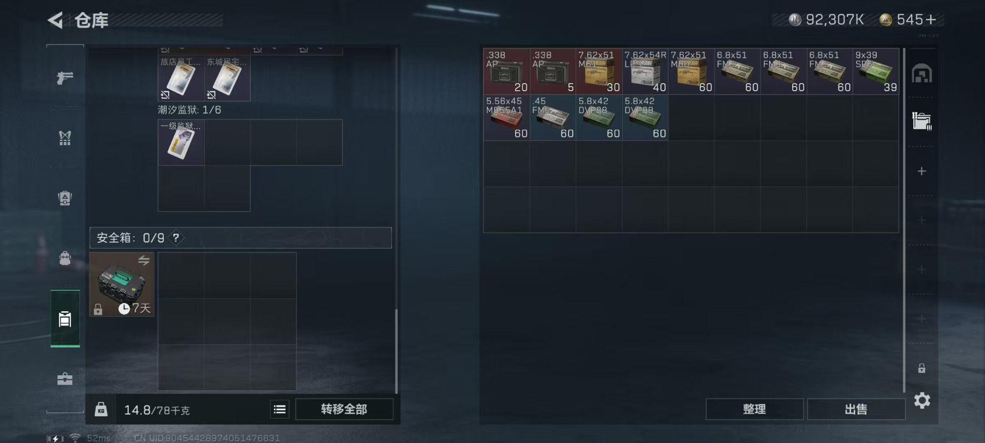 - [11878582]总资产:244.1M 7传说枪械 哈夫币:101K 进阶安全箱(9.17到期) 可二次 可修改实名 烽火地带段位:黄金 全面战场段位:无段位 传说武器皮肤:M4A1突击步枪-阿米娅,CAR-15突击步枪-阿米娅,复合弓-黑-天际线,AK-12突击步枪-特斯拉线圈,SR-3M紧凑突击步枪-特斯拉线圈,UZI冲锋枪-特斯拉线圈,勇士冲锋枪-能天使-午夜邮差 史诗武器皮肤:MP5冲锋枪-深海恐惧,SG552突击步枪-深海恐惧,SV-98狙击步枪-林中猎手,M250通用机枪-囚徒,SCAR-H战斗步枪-囚徒