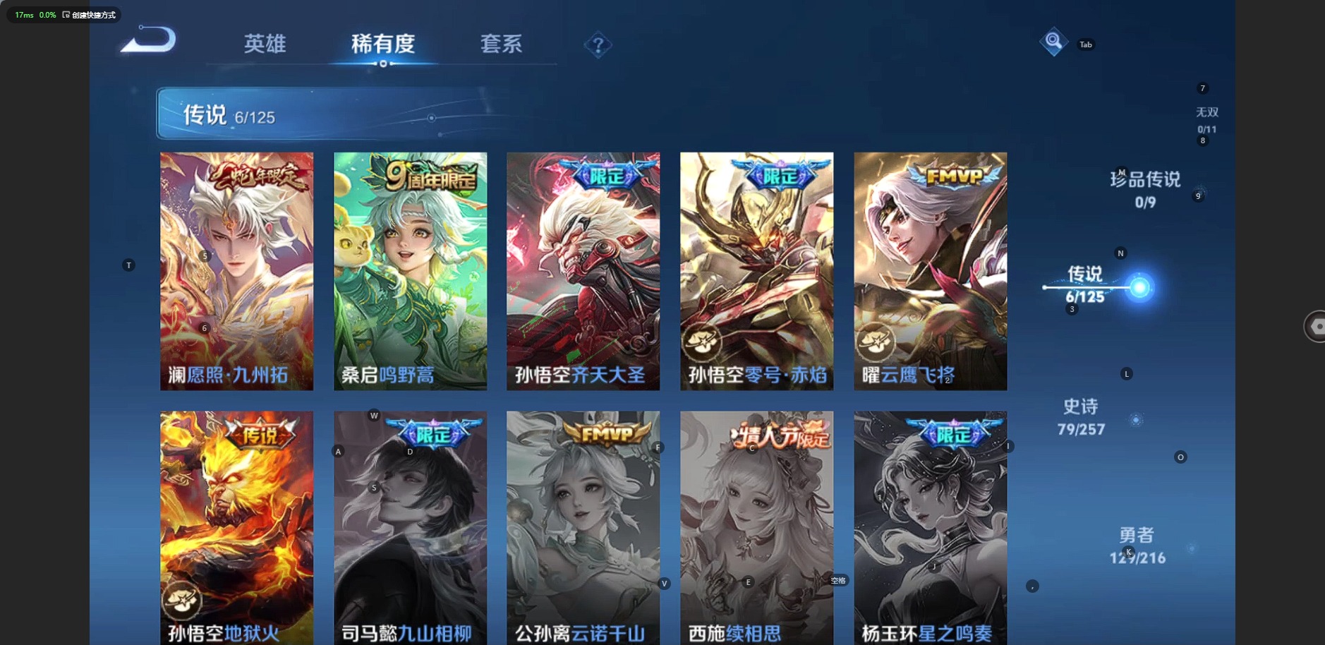 - [11820311]V6 2珍品传说 2传说 123英雄 171皮肤 可修改实名 优质装备:朽木白哉,黑崎一护,浮生妄,涂山容容 珍宝阁皮:玩趣恶龙 限定皮:逐霄战戟,鸣野蒿,五谷丰年,李小龙,唐三藏 史诗皮:赞萌露比,鸭鸭历险记-刘禅,化蝶舞,龙之律动,石田雨龙,百相守梦-周瑜,茶境仙,怒海争锋,炽弈燎原,破空之剑,百相守梦-百里守约,百相守梦-黄忠,守夜人,紫霞仙子,电玩小子(小书包),特工魅影,高渐离燃音魔法,冰冠公主,末日机甲-吕布,猫狗日记-孙策,节奏热浪,水果甜心,星夜王子,功夫厨神,德古拉伯爵,暗隐猎兽者,幽灵船长,鬼剑武藏,天秀·启明,地狱岩魂,纤云弄巧,缤纷独角兽,乘风破浪,逐浪之夏,水晶猎龙者,曙光守护者,箭羽风息,圣诞狂欢,圣诞恋歌,鹰眼统帅,暗夜贵公子,无心,未来纪元-赵云