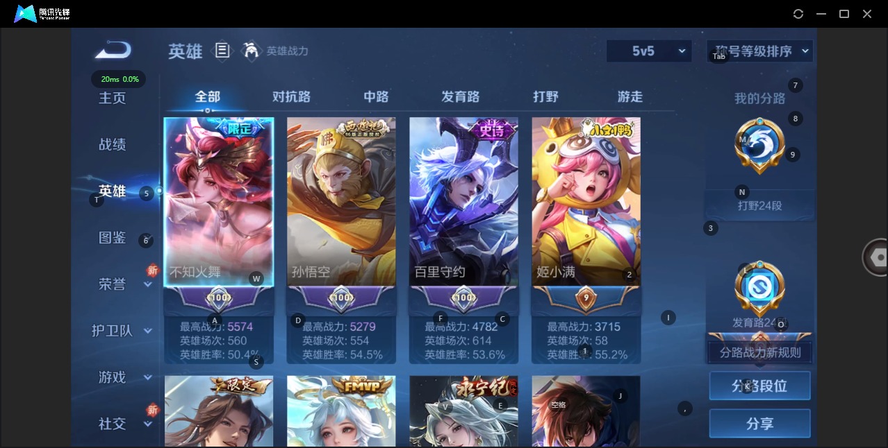 - [12092046]V5 107英雄 92皮肤 可修改实名 珍宝阁皮:蔷薇恋人 限定皮:至尊宝,李小龙,大圣娶亲 史诗皮:百相守梦-黄忠,苍穹之光,猫狗日记-孙策,水果甜心,幽灵船长,鬼剑武藏,逐浪之夏,曙光守护者,鹰眼统帅,魅力维加斯,未来纪元-赵云
