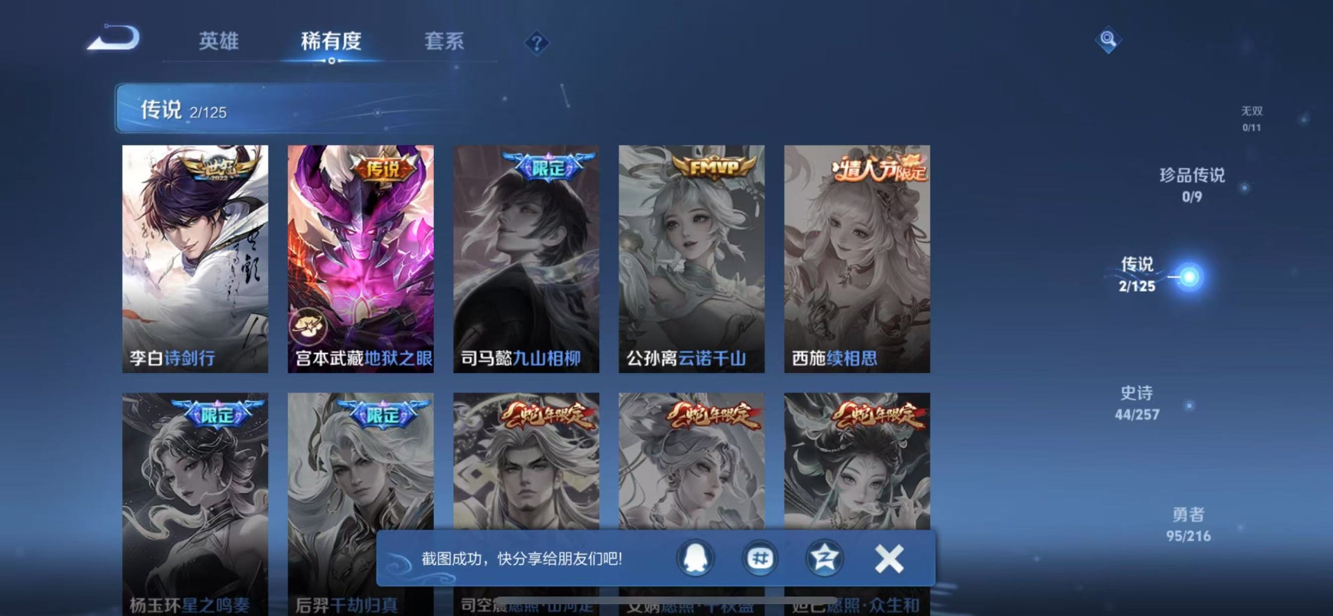 - [11472232]V8 1典藏 10传说 124英雄 289皮肤 可修改实名 荣耀水晶:全息碎影(猴子典藏) 传说皮:铠冥王哈迪斯,幻光神枪,黄金射手座,地狱火,地狱之眼,云霓雀翎,猫影幻舞,鲁班七号-时之奇旅 珍宝阁皮:胡桃夹子,女武神,玩趣恶龙 限定皮:逐霄战戟,鸣野蒿,至尊宝,傲雪梅枪,魔法小厨娘,五谷丰年,梁祝,天狼征服者,李小龙,孙行者,大圣娶亲 史诗皮:鸭鸭历险记-刘禅,灵蛊蚀心,蔬乡物语(鲁班七号),遇见神鹿,电玩小子(小书包),白龙吟,黄金分割率,特工魅影,千年之狐,江河有灵,百解令(蒙犽),冰冠公主,偶像歌手,无限星赏官,暗夜猫娘,末日机甲-吕布,猫狗日记-孙策,猫狗日记-大乔,节奏热浪,女仆咖啡,摇滚巨星,水果甜心,绅士熊喵,天才门将,星夜王子,心灵骇客,功夫厨神,德古拉伯爵,暗隐猎兽者,幽灵船长,鬼剑武藏,心灵战警,舞动绿茵,地狱岩魂,纤云弄巧,繁星吟游(呼啦呼啦),拒霜思,缤纷独角兽,乘风破浪,逐浪之夏,水晶猎龙者,曙光守护者,箭羽风息,原初追逐者,圣诞狂欢,圣诞恋歌,鹰眼统帅,暗夜贵公子,魅力维加斯,黎明之约,奇遇舞章,无心,未来纪元-赵云