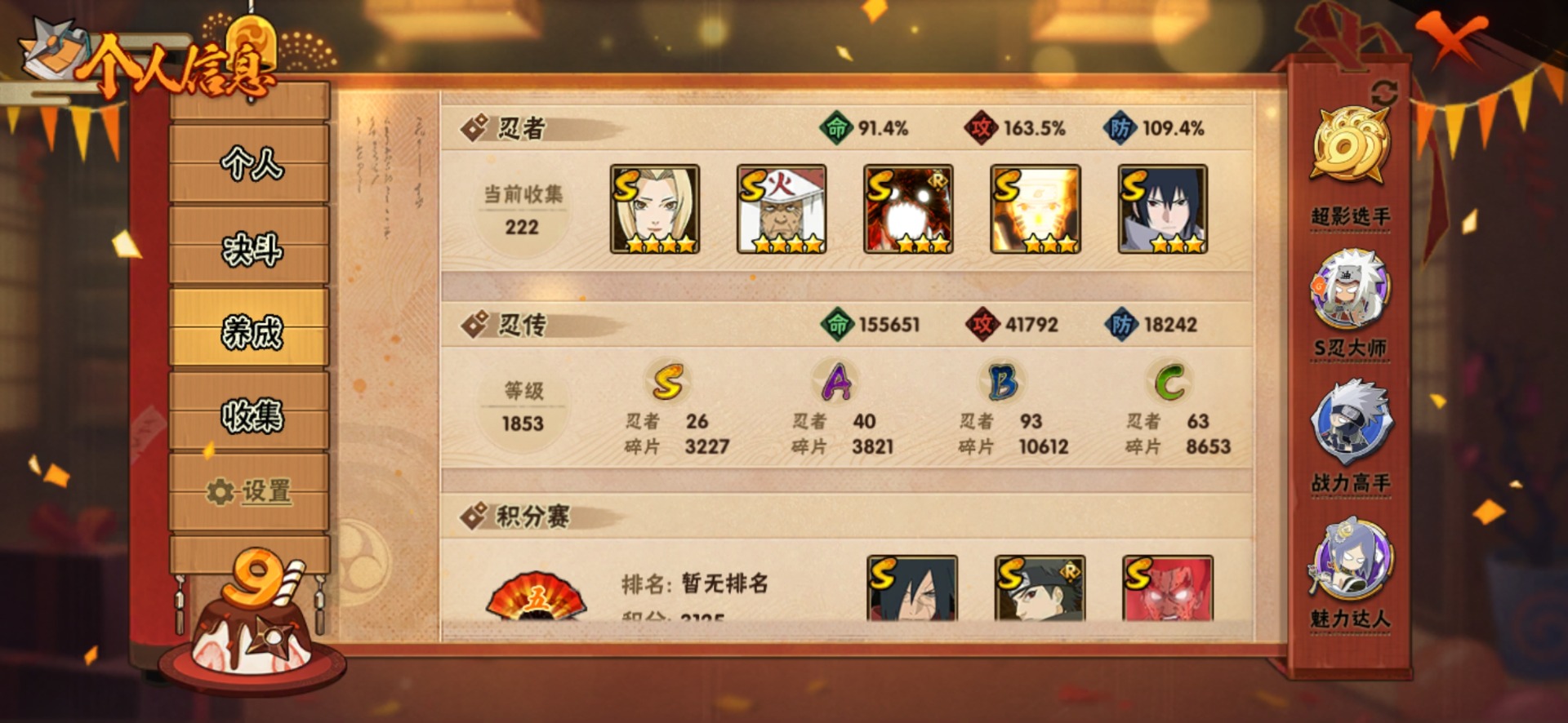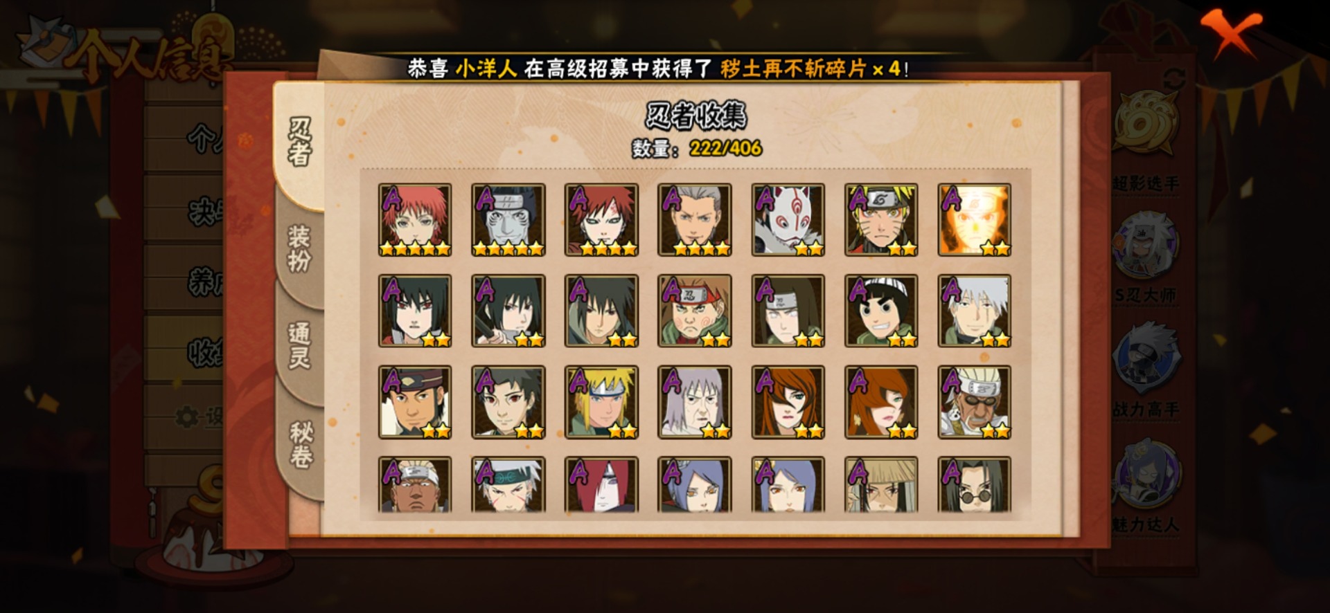 [11841707]V11 26S忍 40A忍 17通灵 1184.7W战力 可二次 可修改实名 优质装备:千手柱间「秽土转生」,宇智波鼬「秽土转生」,佩恩·天道「超」,药师兜「仙人模式」,宇智波斑「秽土转生」,艾「三代目雷影」,宇智波斑 「木叶创立」,波风水门「秽土转生」,迈特凯「死门」,宇智波带土 「忍界大战」,漩涡鸣人 「九喇嘛连结」,宇智波佐助「永恒万花筒」,宇智波斑「秽土转生·解」,宇智波止水「须佐能乎」,旗木卡卡西「须佐能乎」,自来也 「传说中的三忍」,漩涡鸣人 「暴怒·第六尾」 S级忍者:自来也 「舞之豪杰」,自来也「仙人模式」,宇智波鼬 「须佐能乎」,佩恩「天道」,猿飞日斩,波风水门,大蛇丸,自来也,纲手