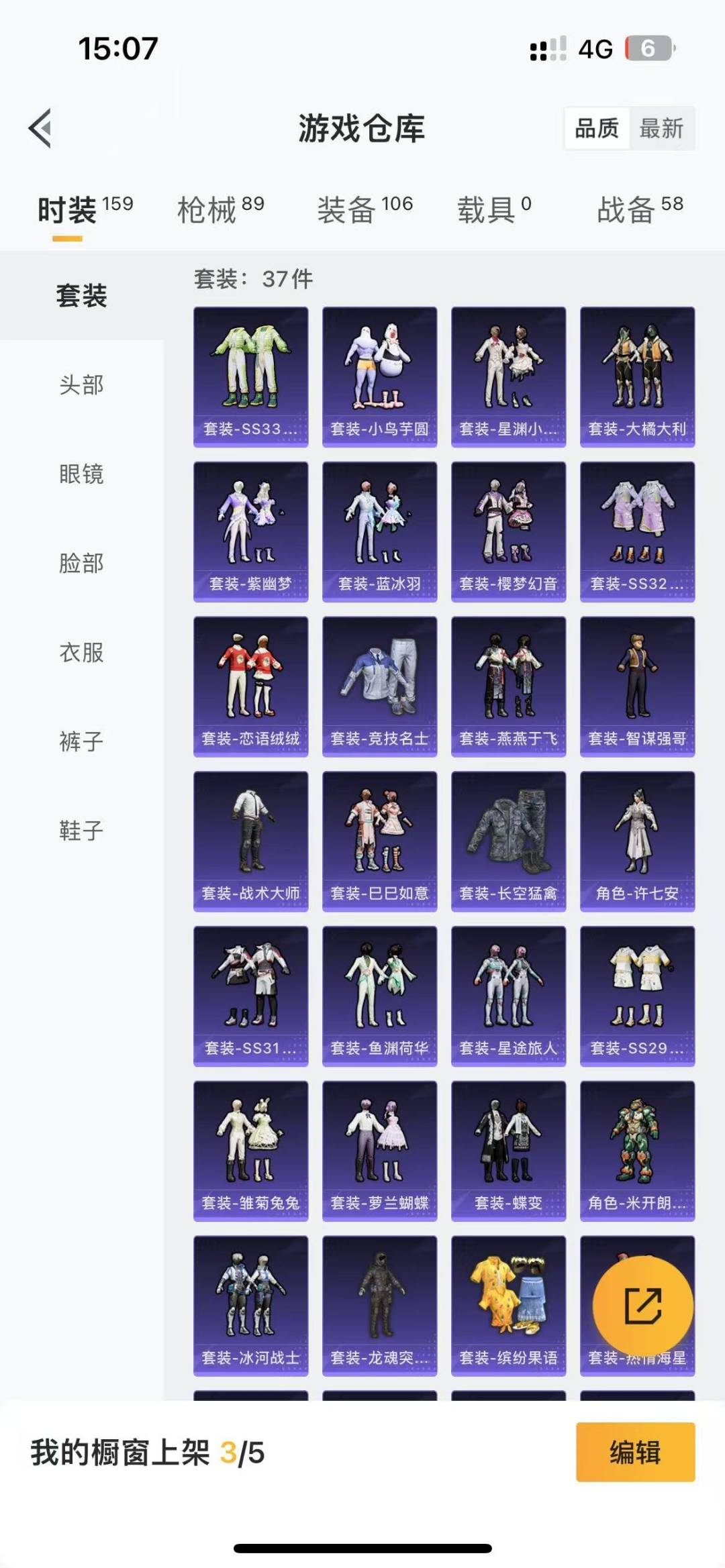 [11843709]4特效枪 可二次 可修改实名 安全保护中 稀有枪皮:Kar98K-巳巳如意,AUG-暖羊咩咩,GROZA-镜光银凌,MK14-甜梦熊击 五级特效枪:五级MK14-甜梦熊击,五级GROZA-镜光银凌,五级Kar98K-巳巳如意,五级AUG-暖羊咩咩 紫色装扮:SS20特训,SS31特训套装,SS33特训套装,娴静芝兰,缤纷果语,冰河战士,龙魂突击队,蝶变,长空猛禽,黄色运动,鹤鸣,幻影武者,猎鹰,雏菊兔兔,萝兰蝴蝶,SS29特训,米开朗基罗,纯真浪花,热情海星,鱼渊荷华,燕燕于飞,巳巳如意,星途旅人,竞技名士,许七安,大橘大利,星渊小夜曲,小鸟芋圆,智慧之神,风华少年志,恋语绒绒,樱梦幻音,蓝冰羽,紫幽梦,SS32特训服(SS32特训套装),智谋强哥 优质战备:时空协奏降落伞,霓虹漫游降落伞,繁龙极客飞行器,临安公主降落伞,月下星之子降落伞,彩虹独角兽降落伞,神秘黑猫降落伞,烈焰拳霸降落伞