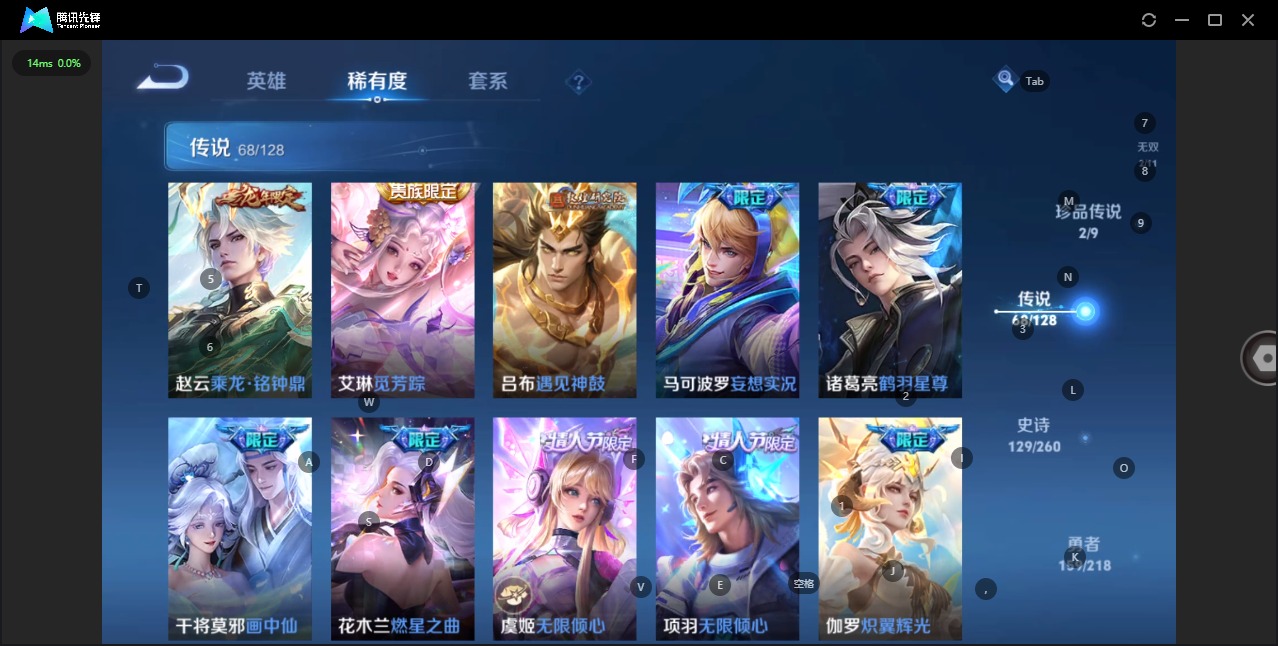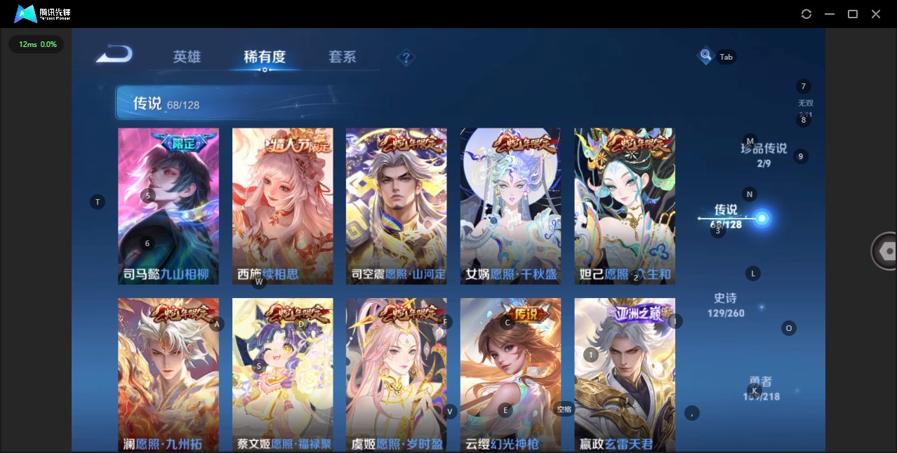 - [12003041]V7 2典藏 12传说 124英雄 237皮肤 可修改实名 优质装备:无限飓风号(高达),神鉴启示录,冠军飞将,久胜战神,云霓雀翎,无双飞将,澜逐花归海,诡秘之主,涂山容容 传说皮:典韦战鼓燎原 珍宝阁皮:蔷薇恋人,玩趣恶龙 限定皮:愿照·岁时盈(虞姬年限),愿照·山河定(司空震年限),陌上桑,鸣野蒿,至尊宝,时雨天司(水龙头),诗剑行,冰锋战神,天狼绘梦者,李小龙,如梦令-后羿,孙行者,寅虎·心曲(虎婆) 史诗皮:鸭鸭历险记-刘禅,器灵·浮梦炉,灵蛊蚀心,星界战将,谪仙醉月,龙之律动,石田雨龙,百相守梦-周瑜,茶境仙,破空之剑,百相守梦-百里守约,百相守梦-黄忠,紫霞仙子,特工魅影,千年之狐,偶像歌手,末日机甲-吕布,猫狗日记-孙策,乱世虎臣,节奏热浪,修罗,女仆咖啡,摇滚巨星,水果甜心,绅士熊喵,功夫厨神,德古拉伯爵,暗隐猎兽者,幽灵船长,鬼剑武藏,心灵战警,乐园奇幻夜,天秀·启明,舞动绿茵,地狱岩魂,缤纷独角兽,乘风破浪,逐浪之夏,水晶猎龙者,曙光守护者,箭羽风息,圣诞狂欢,圣诞恋歌,鹰眼统帅,暗夜贵公子,黎明之约,无心,未来纪元-赵云