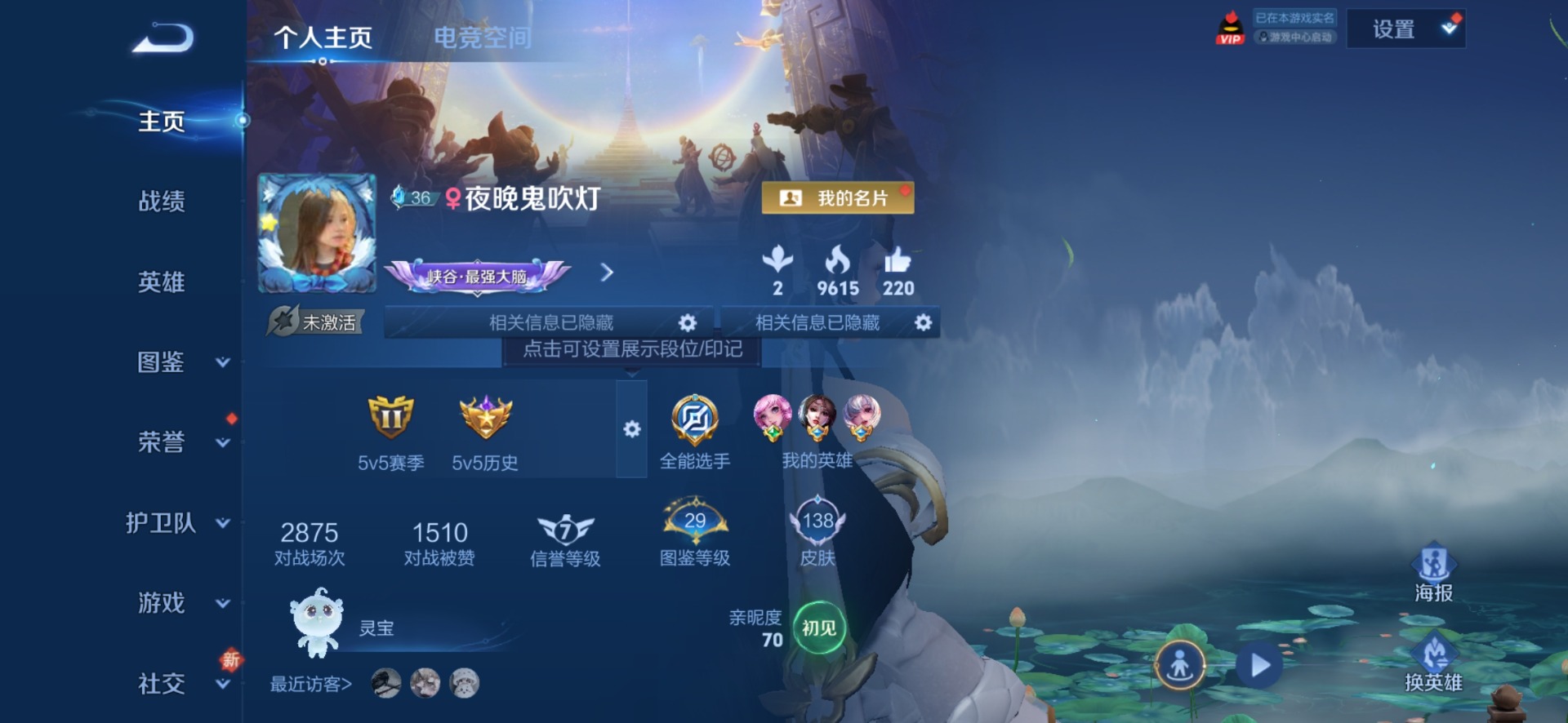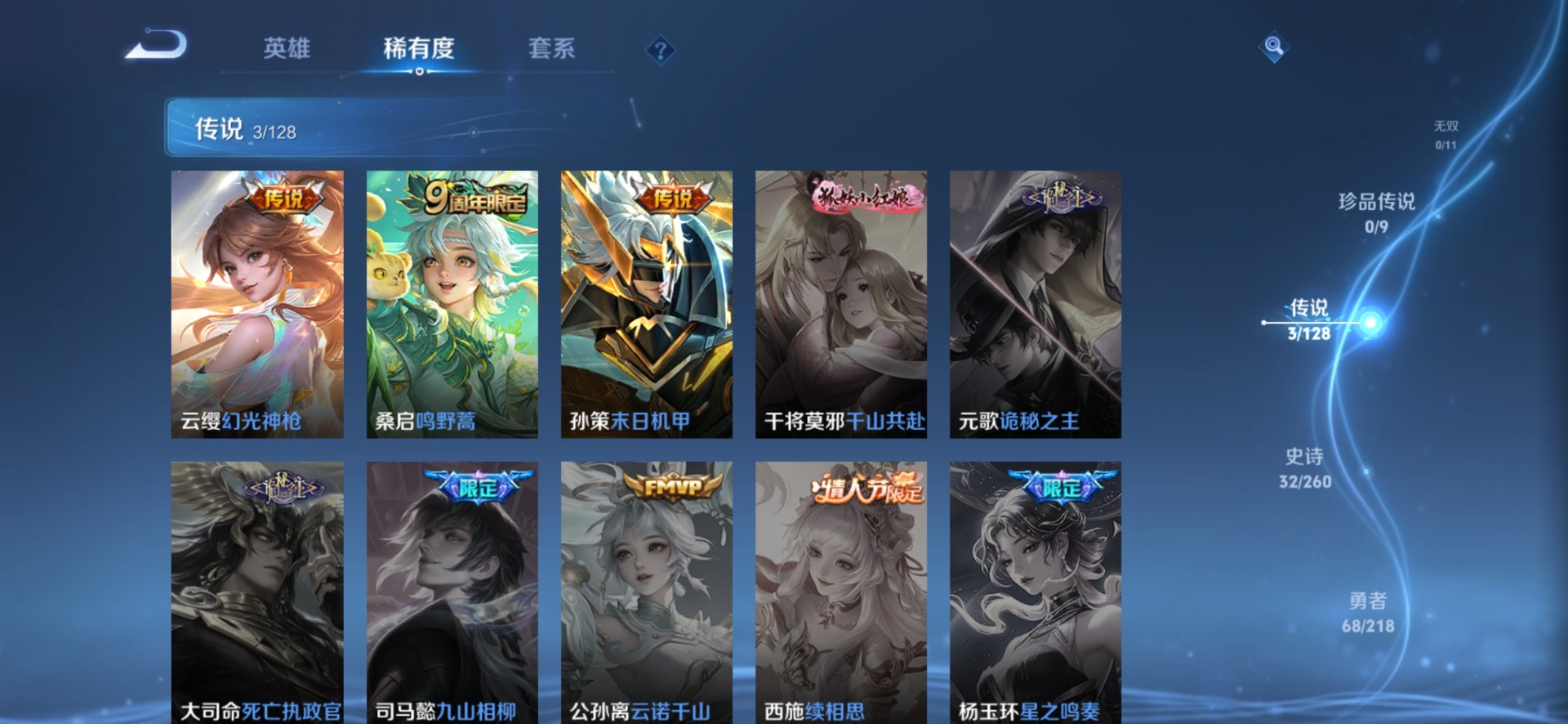 [11846291]V7 3传说 123英雄 138皮肤 可修改实名 女号 优质装备:末日机甲-孙策 传说皮:幻光神枪 珍宝阁皮:玩趣恶龙 限定皮:鸣野蒿,至尊宝,五谷丰年,虎魄,李小龙 史诗皮:龙之律动,石田雨龙,特工魅影,千年之狐,青蛇,龙骑士(小龙虾),时之恋人-孙尚香,乱世虎臣,节奏热浪,女仆咖啡,水果甜心,星夜王子,心灵骇客,幽灵船长,鬼剑武藏,心灵战警,拒霜思,逐浪之夏,水晶猎龙者,金属风暴,鹰眼统帅,赏金猎手,未来纪元-赵云