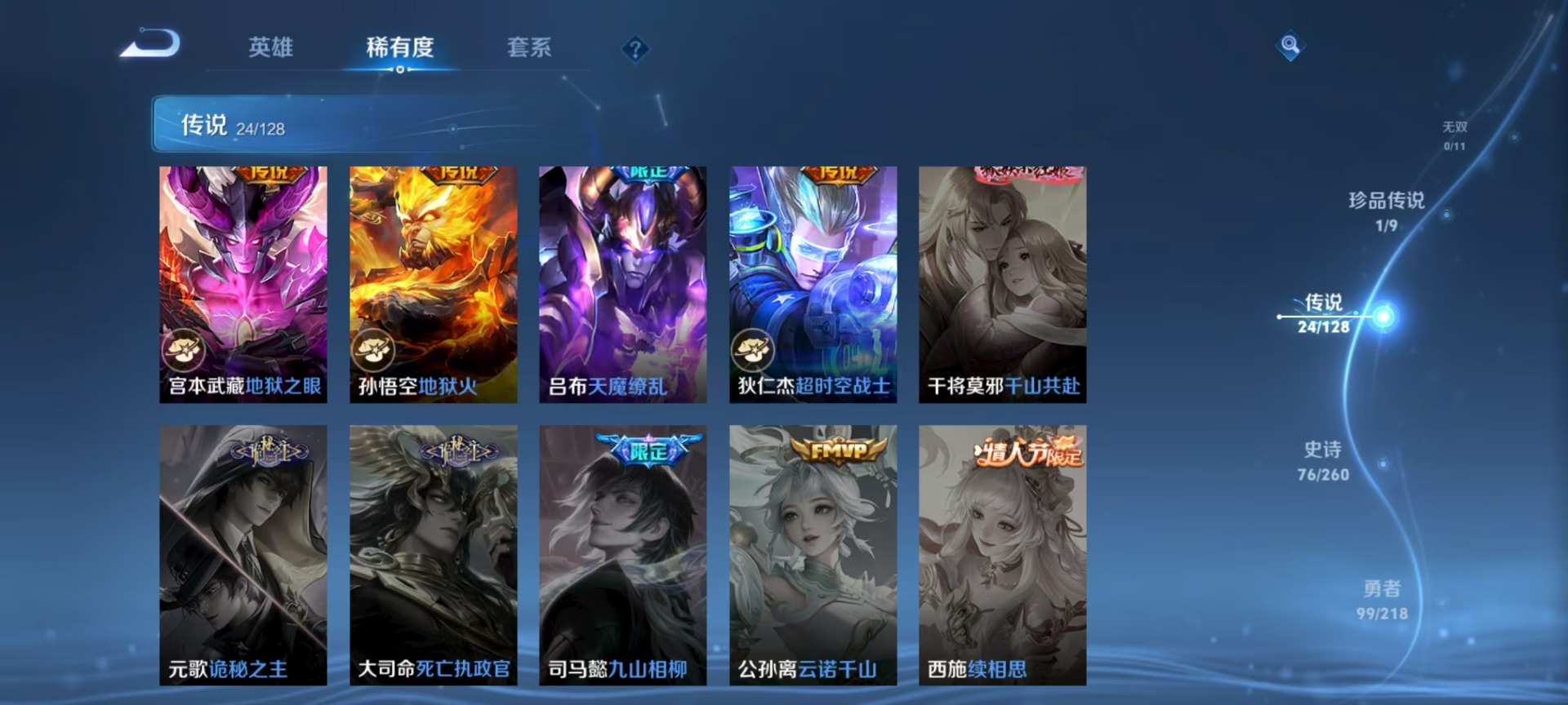 - PX_2101868-贵族8/皮肤277/传说15/史诗74/英雄124/马可波罗怪盗基德/玩趣恶龙/特工战影/超时空战士男/胖达荣荣/时之恋人男/一念神魔/云鹰飞将/零号赤焰/启明星使/齐天大圣/逐花归海/乘龙铭钟鼎/乘龙淬吴钩/乘龙问璇玑/战鼓燎原/桑启鸣野蒿/澜愿照九州拓/暃埋骨钱/大乔绒语心约/姜子牙天穹之誓/李白谪仙醉月/狄仁杰阴阳师/赵云皇家上将/玩趣恶龙/扁鹊奇幻香踪/元歌无心/山海