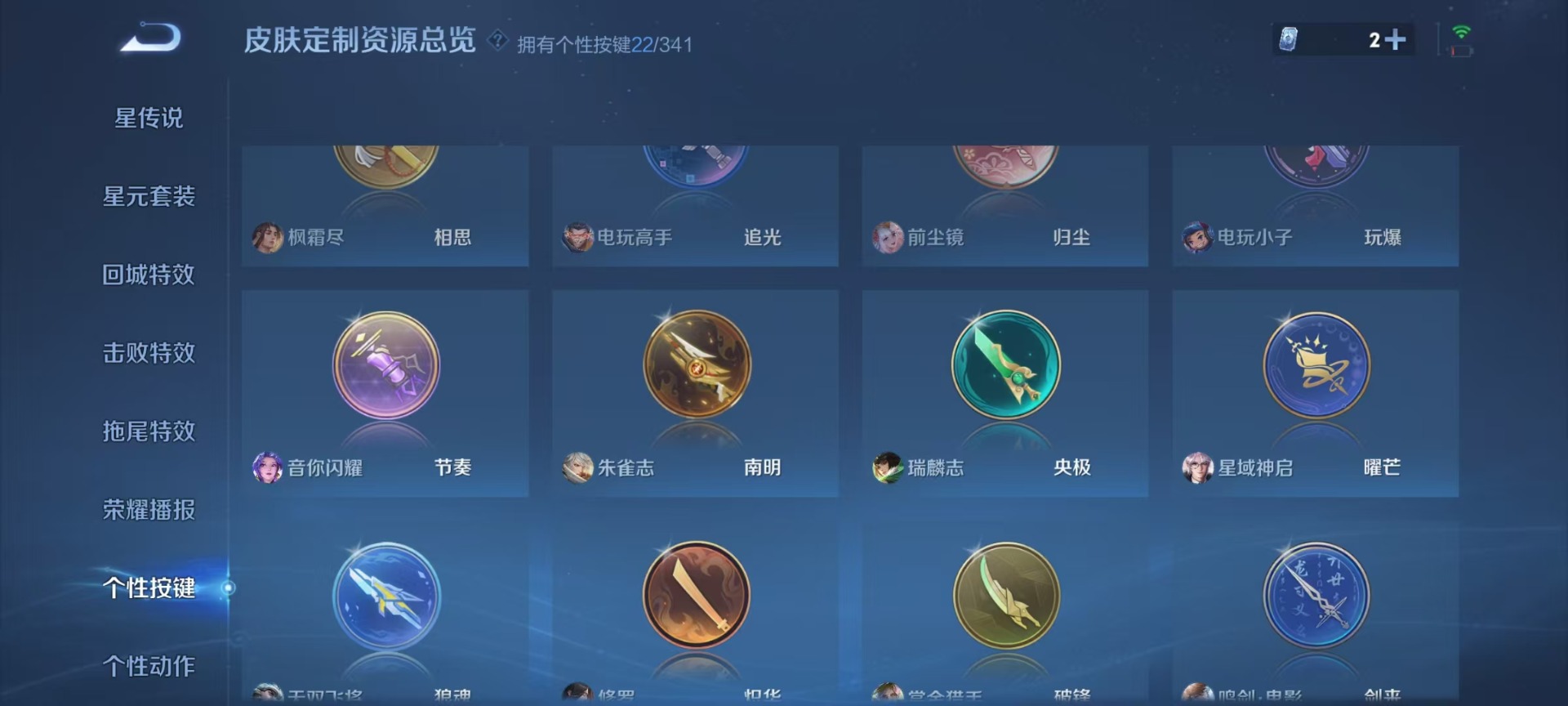 后羿无尽星芒,鲁班大师匿光启智者,裴擒虎天狼狩猎者,花木兰瑞麟志,桑启鸣野蒿,百里守约朱雀志,娜可露露前尘镜,橘右京枫霜尽