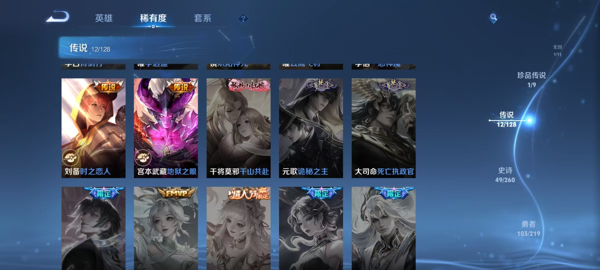 - [12090314]V10 13典藏 9无双 4珍品传说 102传说 124英雄 556皮肤 典藏英雄武则天 可修改实名 优质装备:天鹅之梦(小乔典藏),星空梦想(太空人),倪克斯神谕(宇宙婆娘),鸣剑·曳影,星域神启(倪克斯贼亮),九霄神辉(木兰典藏),赤影疾锋,银白咏叹调(倪克斯侍卫),幻阙歌(貂蝉典藏),弑枪猎影(韩信典藏),真我赫兹(瑶)(瑶无双),神器·明辉仪,青丘·九尾(妲己无双),碎月剑心(李白无双),神鉴启示录,小乔时之魔女(小乔无双),韩信群星魔术团(韩信无双),花合斗,拾光映像(瑶典藏),雪境奇遇-甄姬,器灵·螭龙剑,最初的交响(伽罗典藏),江户川柯南,怪盗基德,器灵·落星盏,黄金狮子座,黄金射手座,冠军飞将,云鹰飞将(小将军),绛天战甲(鸡嘴战神),黄金白羊座,猫影幻舞,久胜战神,炽阳神光,一念神魔,云霓雀翎,末日机甲-孙尚香(绿蚂蚱),地狱火,仲夏夜之梦(大飞蛾),音你心动-小乔,海洋之心,飞鸢探春,音你心动-周瑜,胖达荣荣,乞巧织情,时之恋人-刘备(电焊工),游龙清影(小青龙),超时空战士-狄仁杰,花朝如约(花篮子),挚爱之约,挚爱花嫁,无双飞将,音你闪耀(rap皮),神器·狴犴令,神器·明辉仪,山海·炽霜斩(李信年限),山海·琳琅生(小乔年限),山海·苍雷引(电光曜子),炽翼辉光(娃娃菜牛角包),画中仙,浮生妄,记忆之芯(机甲兔),青丘·九尾,百相守梦(张飞),追逃游戏(亚瑟),追逃游戏(安琪拉),电玩·雷克斯,鹤羽星尊,灼幽烈阳,妄想实况,妄想奇谈,鹤归松栖(云缨),遇见神鼓,鲁班七号-时之奇旅,大乔-时之奇旅,永恒水手月亮,夜礼服假面,小动物乐团,霜月吟,澜逐花归海,艾琳觅芳踪,琥珀纪元铠,琥珀纪元马超,金乌负日,黄金天蝎座,云中君群星魔术团,朵莉亚心动手记,千劫归真 珍品传说:时之奇旅-孙策 传说皮:乘龙·问璇玑(孙尚香年限),乘龙·铭钟鼎(赵云年限),乘龙·淬吴钩(孙策年限),貂蝉曦玄引,吕布曦玄引,典韦战鼓燎原,落雪白狼,幻光神枪 珍宝阁皮:妄想食味,优雅恋人,蔷薇恋人 限定皮:愿照·九州拓(澜年限),愿照·福禄聚(蔡文姬年限),愿照·岁时盈(虞姬年限),愿照·山河定(司空震年限),愿照·众生和(妲己年限),愿照·千秋盛(女娲年限),映山客,陌上桑,鸣野蒿,至尊宝,白虎志(电光耗子),凤求凰(白切鸡),凤凰于飞,太华(伽罗年限),武陵仙君(小桃