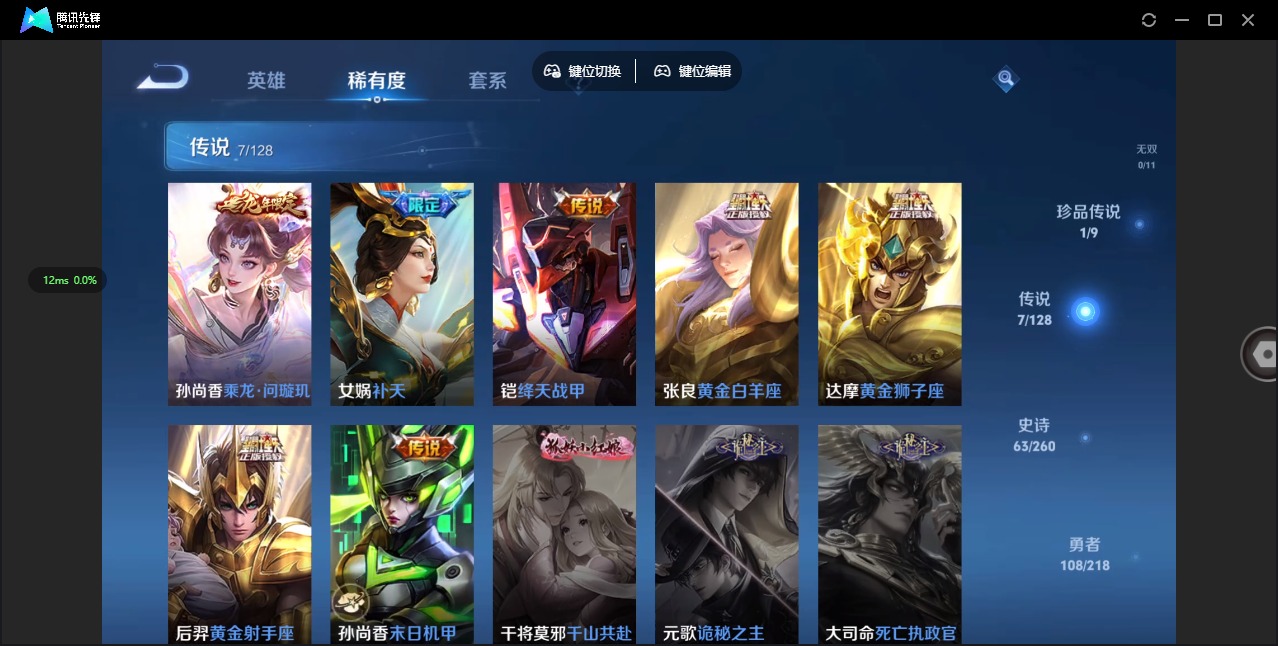 - [12288903]V8 4典藏 12传说 126英雄 276皮肤 典藏英雄武则天 可修改实名 优质装备:星空梦想(太空人),无限飓风号(高达),星域神启(倪克斯贼亮),银白咏叹调(倪克斯侍卫),黄金射手座,一念神魔,零号·赤焰,海洋之心,天秀幻梦,山海·炽霜斩(李信年限),山海·琳琅生(小乔年限),灼幽烈阳 珍宝阁皮:胡桃夹子,万物之道,蔷薇恋人 限定皮:逐霄战戟,鸣野蒿,傲雪梅枪,绯月行,匿光决锋者,怒海麟威,降魔,五谷丰年,游园惊梦,烈魂,孙行者,寅虎·御盾(廉颇年限),时之祈愿-瑶(瑶传限),山海·玄木吟(马可年限),冰霜神祇 史诗皮:龙之律动,琥珀纪元伽罗,百相守梦-黄忠,百相守梦-百里守约,苍穹之光,电玩小子(小书包),黄金分割率,特工魅影,冰冠公主,匿光侦查者,江河有灵,百解令(蒙犽),高渐离燃音魔法,电玩·爆裂旋风,晚萤,偶像歌手,龙骑士(小龙虾),暗夜猫娘,末日机甲-吕布,猫狗日记-孙策,猫狗日记-大乔,乱世虎臣,节奏热浪,女仆咖啡,摇滚巨星,水果甜心,天才门将,星夜王子,心灵骇客,功夫厨神,德古拉伯爵,暗隐猎兽者,幽灵船长,心灵战警,地狱岩魂,纤云弄巧,缤纷独角兽,乘风破浪,逐浪之夏,水晶猎龙者,曙光守护者,箭羽风息,圣诞狂欢,圣诞恋歌,鹰眼统帅,王者之锤,魅力维加斯,天秀幻梦,寅虎·御盾,无心,未来纪元-赵云