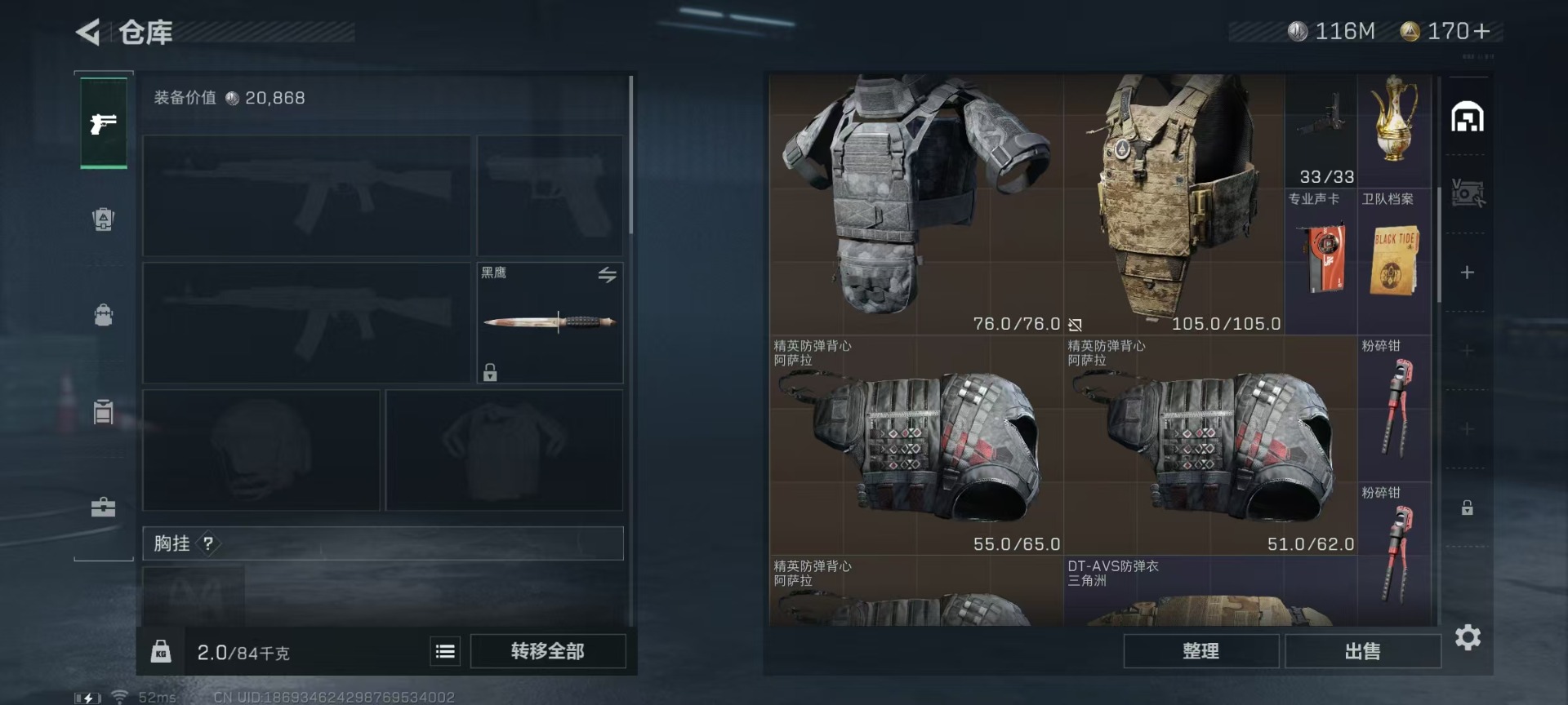 [11848056]总资产:150.2M 9传说枪械 哈夫币:116K 进阶安全箱(9.16到期) 可二次 可修改实名 烽火地带段位:黄金 全面战场段位:无段位 传说武器皮肤:M16A4突击步枪-狩猎时刻,AWM狙击步枪-捞点薯条,腾龙突击步枪-捞点薯条,93R-捞点薯条,勇士冲锋枪-能天使-午夜邮差,Vector冲锋枪-狩猎时刻,G3战斗步枪-狩猎时刻,复合弓-黑-天际线,M4A1突击步枪-阿米娅 史诗武器皮肤:AUG突击步枪-蝮蛇,QJB201轻机枪-Old Habits,SV-98狙击步枪-囚徒