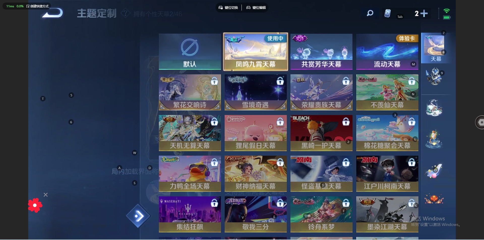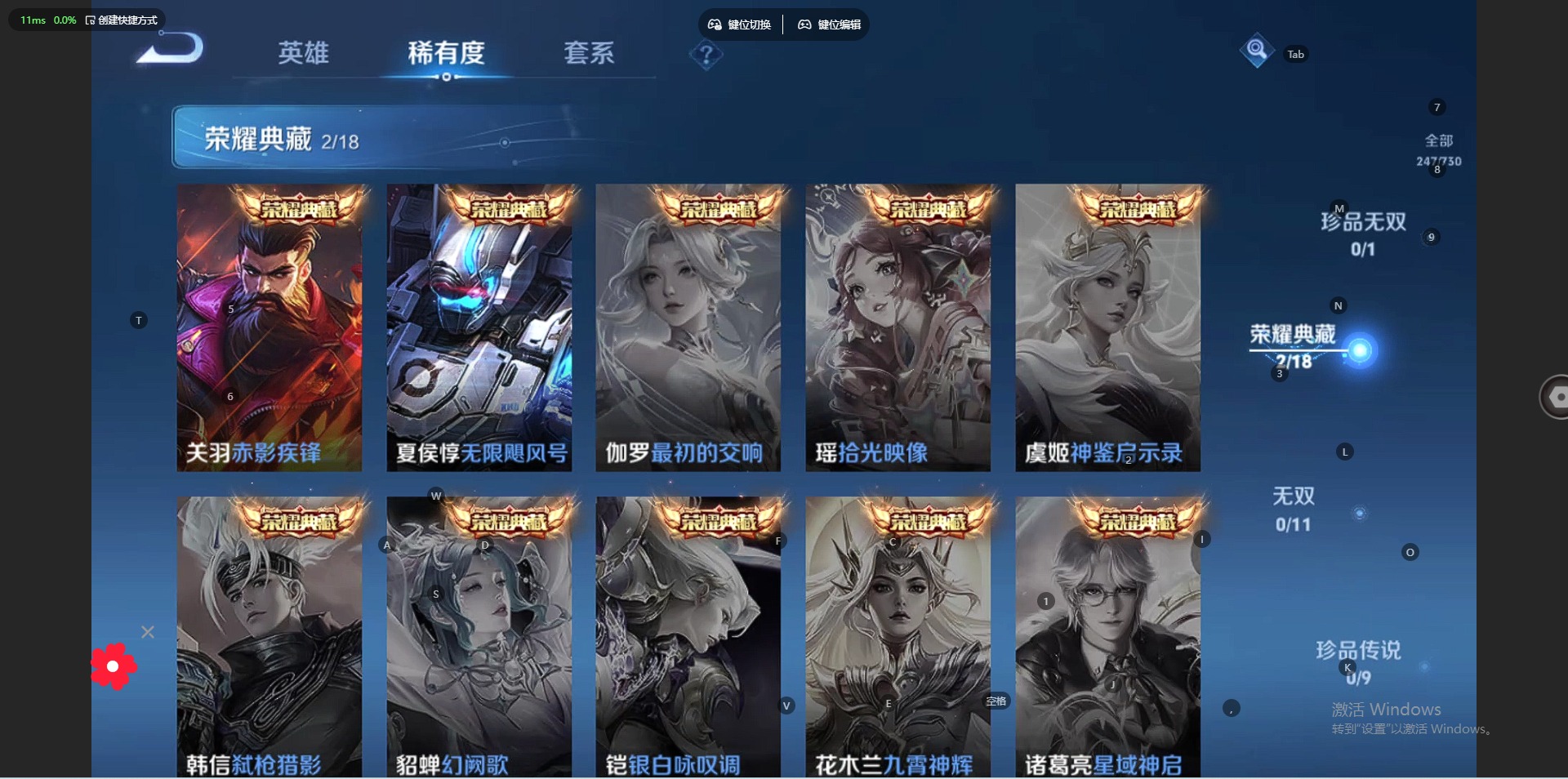 小乔纯白花嫁,诸葛亮时雨天司,公孙离祈雪灵祝,裴擒虎李小龙,裴擒虎天狼狩猎者,东皇太一逐梦之光,上官婉儿梁祝,花木兰默契交锋,猪八戒猪悟能,孙悟空孙行者,孙悟空至尊宝,关羽冰锋战神