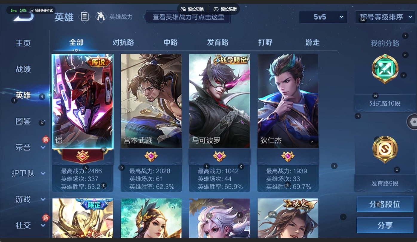 - [11248209]V10 3典藏 1珍品无双 21传说 124英雄 351皮肤 可修改实名 优质装备:馥梦繁花,杀手不太冷,鸣剑·曳影,全息碎影(猴子典藏),黄金狮子座,黄金射手座,冠军飞将,云鹰飞将(小将军),久胜战神,一念神魔,云霓雀翎,末日机甲-孙尚香(绿蚂蚱),仲夏夜之梦(大飞蛾),地狱之眼,时之恋人-刘备(电焊工),超时空战士-狄仁杰,艾琳觅芳踪 传说皮:幻光神枪 珍宝阁皮:妄想食味,优雅恋人 限定皮:逐霄战戟,鸣野蒿,至尊宝,白虎志(电光耗子),凤求凰(白切鸡),凤凰于飞,太华(伽罗年限),武陵仙君(小桃花),时之彼端,神威(电光马子),飞衡(韩信年限),高山流水,五谷丰年,青龙志(铠年限),冰锋战神,幽恒(沐浴露),游园惊梦,梁祝,天狼绘梦者,永曜之星,辉光之辰,如梦令-后羿,大圣娶亲,引擎之心,冰霜恋舞曲,神奇女侠 史诗皮:星界战将,灵蛊蚀心,石田雨龙,茶境仙,百相守梦-黄忠,紫霞仙子,苍穹之光,电玩小子(小书包),黄金分割率,特工魅影,千年之狐,电玩·爆裂旋风,江河有灵,百解令(蒙犽),高渐离燃音魔法,蒙恬荣光圣徽,偶像歌手,龙骑士(小龙虾),暗夜猫娘,无限星赏官,冰冠公主,末日机甲-吕布,猫狗日记-孙策,猫狗日记-大乔,乱世虎臣,节奏热浪,修罗,女仆咖啡,摇滚巨星,水果甜心,绅士熊喵,天才门将,星夜王子,心灵骇客,功夫厨神,德古拉伯爵,暗隐猎兽者,幽灵船长,鬼剑武藏,心灵战警,乐园奇幻夜,舞动绿茵,地狱岩魂,纤云弄巧,繁星吟游(呼啦呼啦),拒霜思,缤纷独角兽,乘风破浪,逐浪之夏,水晶猎龙者,曙光守护者,箭羽风息,金属风暴,原初追逐者,圣诞狂欢,圣诞恋歌,鹰眼统帅,王者之锤,暗夜贵公子,魅力维加斯,黎明之约,赏金猎手,无心,未来纪元-赵云