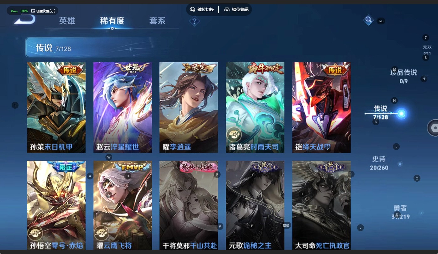 - [11604956]V7 1典藏 6传说 124英雄 252皮肤 可修改实名 荣耀水晶:全息碎影(猴子典藏) 传说皮:一念神魔,云鹰飞将(小将军),超时空战士-狄仁杰 珍宝阁皮:妄想食味,蔷薇恋人,玩趣恶龙 限定皮:逐霄战戟,鸣野蒿,至尊宝,凤求凰(白切鸡),遇见飞天,高山流水,齐天大圣,降魔,五谷丰年,梁祝,御风骁将(吕布年限),李小龙,逐梦之影,孙行者,猪悟能,唐三藏 史诗皮:龙之律动,芈月浮光幕影,化蝶舞,紫霞仙子,白龙吟,黄金分割率,特工魅影,千年之狐,永昼,江河有灵,冰冠公主,偶像歌手,魅语,暗夜猫娘,猫狗日记-孙策,乱世虎臣,修罗,女仆咖啡,摇滚巨星,水果甜心,绅士熊喵,天才门将,星夜王子,心灵骇客,功夫厨神,德古拉伯爵,暗隐猎兽者,幽灵船长,鬼剑武藏,心灵战警,舞动绿茵,纤云弄巧,繁星吟游(呼啦呼啦),缤纷独角兽,乘风破浪,逐浪之夏,水晶猎龙者,曙光守护者,金属风暴,原初追逐者,圣诞狂欢,圣诞恋歌,鹰眼统帅,黎明之约,赏金猎手,无心,未来纪元-赵云