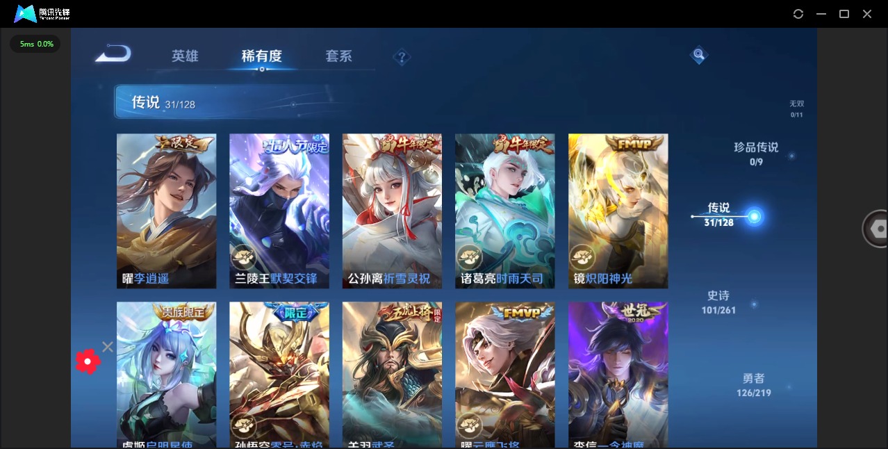 - [11993258]V7 10传说 121英雄 117皮肤 可修改实名 优质装备:冠军飞将,云鹰飞将(小将军),一念神魔,时之恋人-刘备(电焊工),电玩·雷克斯,妄想实况 传说皮:乘龙·铭钟鼎(赵云年限),吕布曦玄引,幻光神枪 珍宝阁皮:妄想食味 限定皮:鸣野蒿,五谷丰年,御风骁将(吕布年限),李小龙 史诗皮:石田雨龙,东方月初,白龙吟,黄金分割率,特工魅影,千年之狐,江河有灵,百解令(蒙犽),偶像歌手,电玩·爆裂旋风,末日机甲-吕布,乱世虎臣,节奏热浪,女仆咖啡,水果甜心,绅士熊喵,心灵骇客,暗隐猎兽者,鬼剑武藏,水晶猎龙者,曙光守护者,箭羽风息,金属风暴,圣诞狂欢,鹰眼统帅,未来纪元-赵云