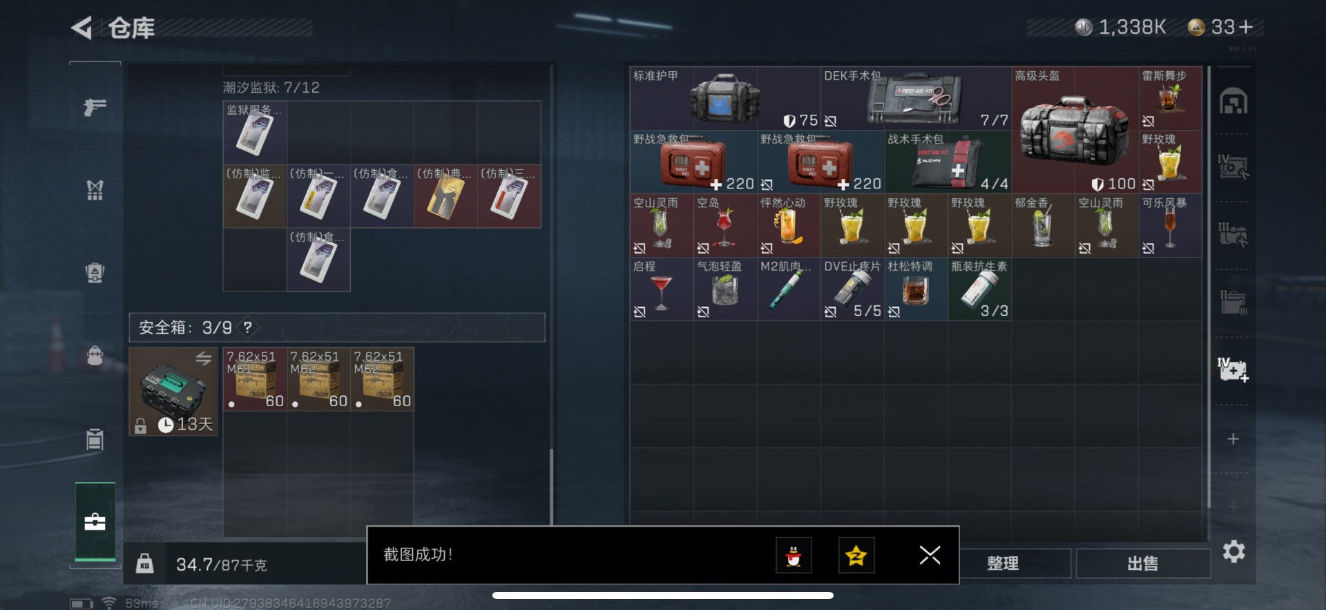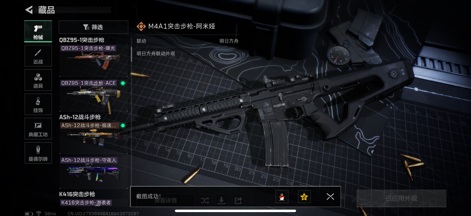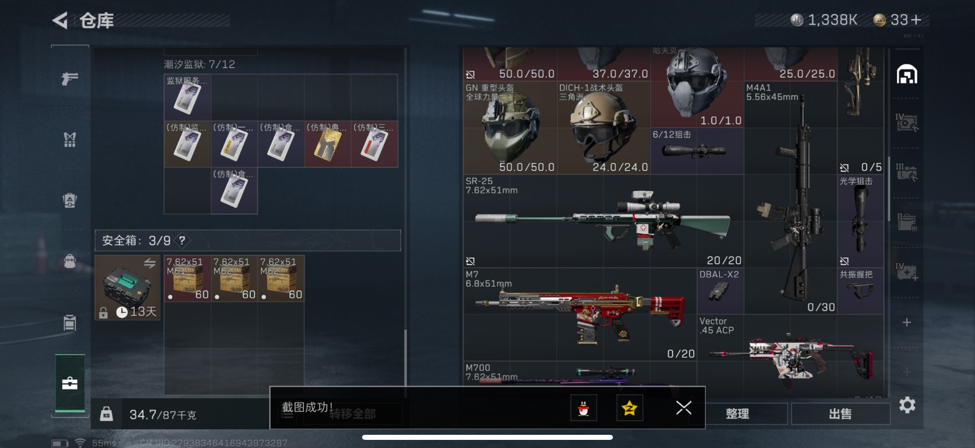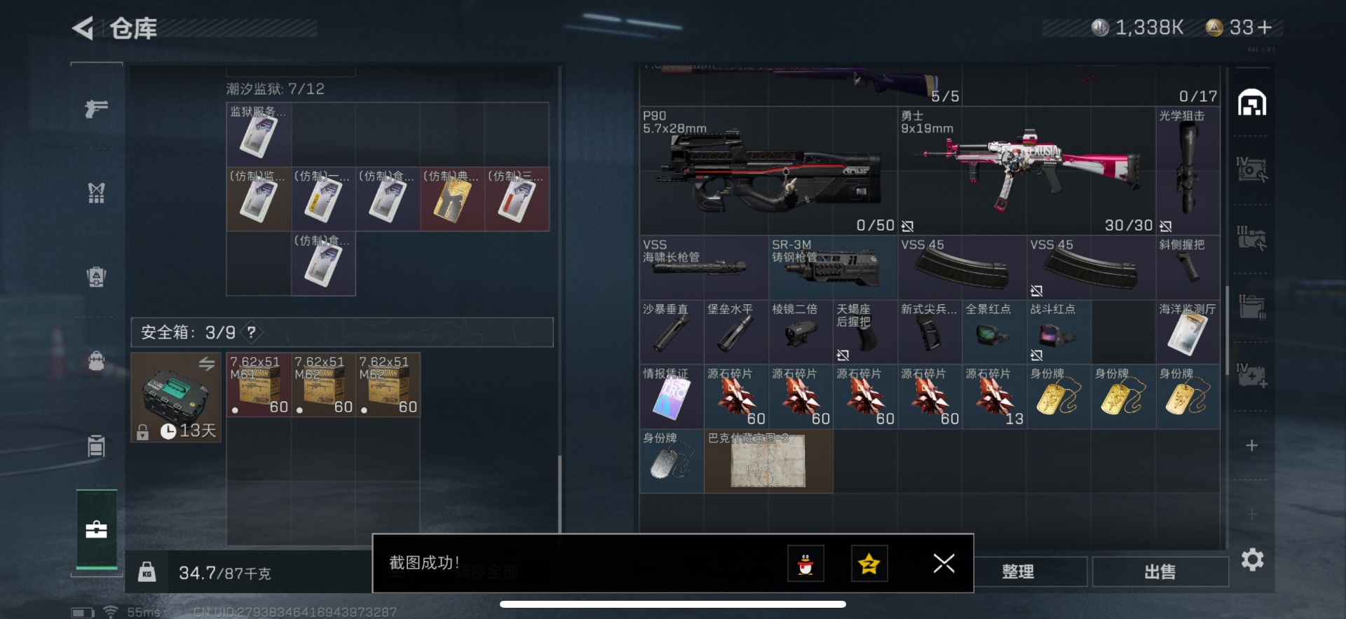 [11852776]总资产:82.5M 1干员外观 1近战传说 25传说枪械 哈夫币:1.338K 顶级安全箱(3×3)9.15号到期 可二次 可修改实名 优质装备:近战-影锋,顶级安全箱(3x3) 烽火地带段位:黑鹰 全面战场段位:将军 传说武器皮肤:SCAR-H战斗步枪-水墨云图,M1014霰弹枪-影锋,AWM狙击步枪-影锋,SCAR-H战斗步枪-铁艺苍穹,SV-98狙击步枪-极速狂飙,Ash-12战斗步枪-极速狂飙,K437突击步枪-极速狂飙,SMG45冲锋枪-骑士,G18-飞虎,UZI冲锋枪-特斯拉线圈,AWM狙击步枪-捞点薯条,腾龙突击步枪-捞点薯条,93R-捞点薯条,AK-12突击步枪-特斯拉线圈,SR-3M紧凑突击步枪-特斯拉线圈,勇士冲锋枪-能天使-午夜邮差,Vector冲锋枪-能天使-午夜邮差,复合弓-黑-天际线,725双管霰弹枪-送葬人-无题密令,M4A1突击步枪-阿米娅,CAR-15突击步枪-阿米娅,AK-12突击步枪-夜鹰,M4A1突击步枪-蚀金玫瑰,CAR-15突击步枪-黑鹰坠落 史诗武器皮肤:Vector冲锋枪-潜袭者,K416突击步枪-暗鸦,M1014霰弹枪-暗鸦,P90冲锋枪-暗鸦,K416突击步枪-潜袭者,M1014霰弹枪-潜袭者,AK-12突击步枪-原型机(典藏),QBZ95-1突击步枪-ACE,AUG突击步枪-特勤执行,M4A1突击步枪-特勤执行,Vector冲锋枪-红色彗星,PTR-32战斗步枪-ACE,SKS射手步枪-ACE,AUG突击步枪-蝮蛇,M700狙击步枪-蝮蛇,PKM通用机枪-蝮蛇,SR-25射手步枪-战场英杰,Ash-12战斗步枪-守夜人,M16A4突击步枪-竞赛选手,P90冲锋枪-暗影猎手,PKM通用机枪-守夜人,AS Val突击步枪-尖端治疗,M700狙击步枪-守夜人,SG552突击步枪-尖端治疗,SR-25射手步枪-尖端治疗,M1014霰弹枪-林中猎手,MP5冲锋枪-深海恐惧,勇士冲锋枪-深海恐惧,SG552突击步枪-深海恐惧,AKM突击步枪-林中猎手,.357左轮-幸运时刻,QJB201轻机枪-Old Habits,QCQ171冲锋枪-禁卫,SR-3M紧凑突击步枪-纷争,SV-98狙击步枪-林中猎手,PTR-32突击步枪-英雄,AS Val突击步枪-典狱官,PKM通用机枪-荒野求生,M250通用机枪-囚徒