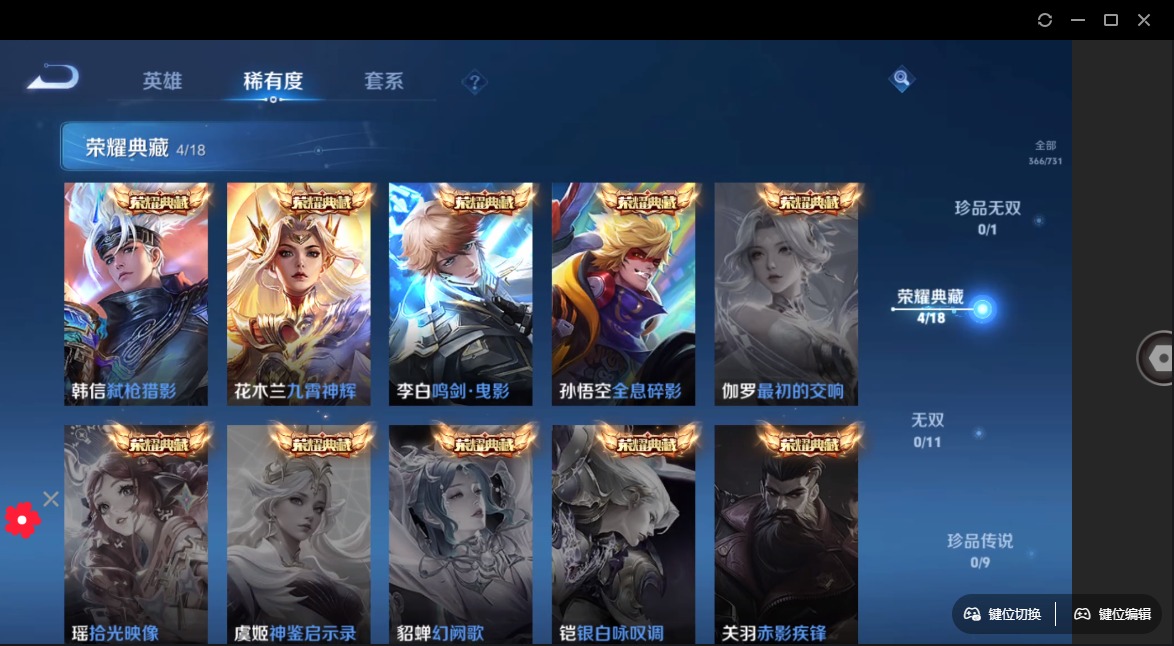 - [11626308]V8 1典藏 1珍品传说 28传说 125英雄 340皮肤 可修改实名 优质装备:九霄神辉(木兰典藏),怪盗基德,黄金狮子座,黄金射手座,冠军飞将,云鹰飞将(小将军),炽阳神光,一念神魔,零号·赤焰,地狱之眼,无双飞将,山海·炽霜斩(李信年限),山海·苍雷引(电光曜子),惊梅引,琥珀纪元马超,涂山容容 传说皮:幻光神枪 珍宝阁皮:妄想食味,胡桃夹子,蔷薇恋人 限定皮:愿照·九州拓(澜年限),愿照·山河定(司空震年限),鸣野蒿,白虎志(电光耗子),凤求凰(白切鸡),太华(伽罗年限),时雨天司(水龙头),神威(电光马子),遇见飞天,高山流水,齐天大圣,五谷丰年,武圣,游园惊梦,梁祝,御风骁将(吕布年限),天狼狩猎者,龙胆,奔雷神使(牛魔年限),祈雪灵祝(雪兔子),李小龙,匿光追影者,寅虎·御盾(廉颇年限),寅虎·赤拳(老虎年限),启示之音,深海之息(深海大菠萝),山海·玄木吟(马可年限) 史诗皮:星界战将,龙之律动,石田雨龙,茶境仙,破空之剑,百相守梦-黄忠,紫霞仙子,电玩小子(小书包),特工魅影,千年之狐,永昼,江河有灵,高渐离燃音魔法,蒙恬荣光圣徽,偶像歌手,电玩·爆裂旋风,暗夜猫娘,龙骑士(小龙虾),末日机甲-吕布,猫狗日记-孙策,乱世虎臣,节奏热浪,修罗,女仆咖啡,水果甜心,绅士熊喵,天才门将,星夜王子,心灵骇客,功夫厨神,德古拉伯爵,暗隐猎兽者,幽灵船长,鬼剑武藏,暗渊魔法,心灵战警,地狱岩魂,纤云弄巧,繁星吟游(呼啦呼啦),拒霜思,缤纷独角兽,乘风破浪,逐浪之夏,水晶猎龙者,曙光守护者,热力回旋,箭羽风息,金属风暴,原初追逐者,圣诞狂欢,圣诞恋歌,鹰眼统帅,王者之锤,魅力维加斯,黎明之约,赏金猎手,寅虎·御盾,无心,未来纪元-赵云,玫瑰异探