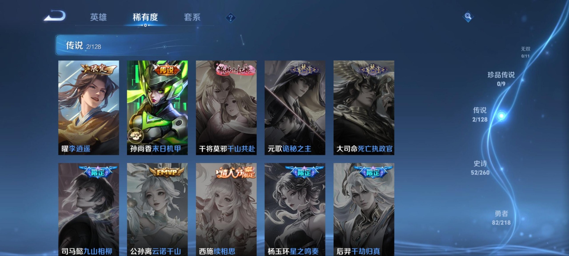 - [11817743]V8 2典藏 6传说 125英雄 247皮肤 典藏英雄武则天 可修改实名 优质装备:星空梦想(太空人),全息碎影(猴子典藏),黄金狮子座,冠军飞将,零号·赤焰,海洋之心 珍宝阁皮:胡桃夹子 限定皮:至尊宝,凤求凰(白切鸡),神威(电光马子),遇见飞天,梁祝,李小龙,逐梦之光,一生所爱,大圣娶亲 史诗皮:百相守梦-黄忠,苍穹之光,电玩小子(小书包),白龙吟,黄金分割率,特工魅影,千年之狐,偶像歌手,魅语,冰冠公主,猫狗日记-孙策,乱世虎臣,节奏热浪,修罗,女仆咖啡,摇滚巨星,天才门将,星夜王子,心灵骇客,功夫厨神,德古拉伯爵,暗隐猎兽者,幽灵船长,鬼剑武藏,心灵战警,纤云弄巧,乘风破浪,逐浪之夏,水晶猎龙者,曙光守护者,原初追逐者,圣诞狂欢,圣诞恋歌,鹰眼统帅,魅力维加斯,黎明之约,未来纪元-赵云