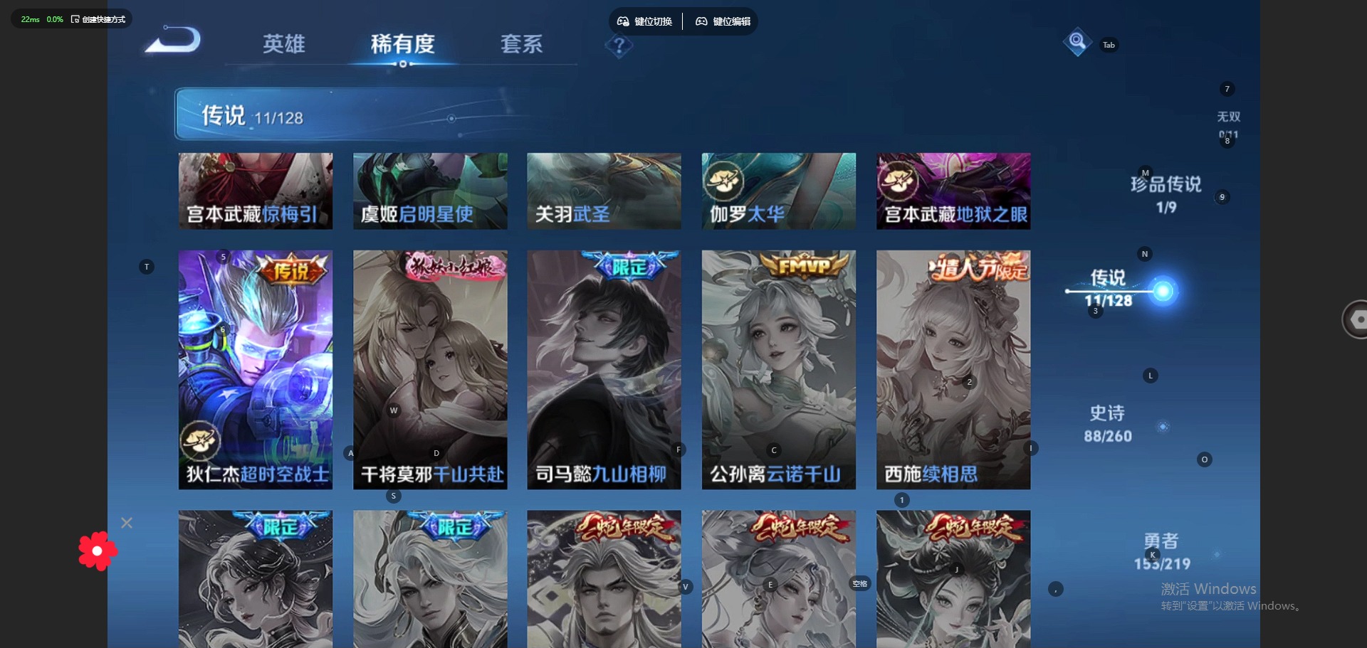 - PX_2096132-15 安卓QQ/无双王者/341皮肤/124英雄/1典藏/0珍品无双/0无双/4珍品传说/33传说/83史诗/8稀有英雄 【4 珍品传说】黑崎一护 宫本武藏,怪盗基德 马可波罗,时之奇旅 孙策,兔狲·蓬尾 张飞, 【1 典藏皮肤】银白咏叹调 铠, 【33 传说皮肤】启明星使 虞姬,逐花归海 澜,云鹰飞将 曜,齐天大圣 孙悟空,浮生妄 夏洛特,落雪白狼 亚连,惊梅引 宫本武藏,