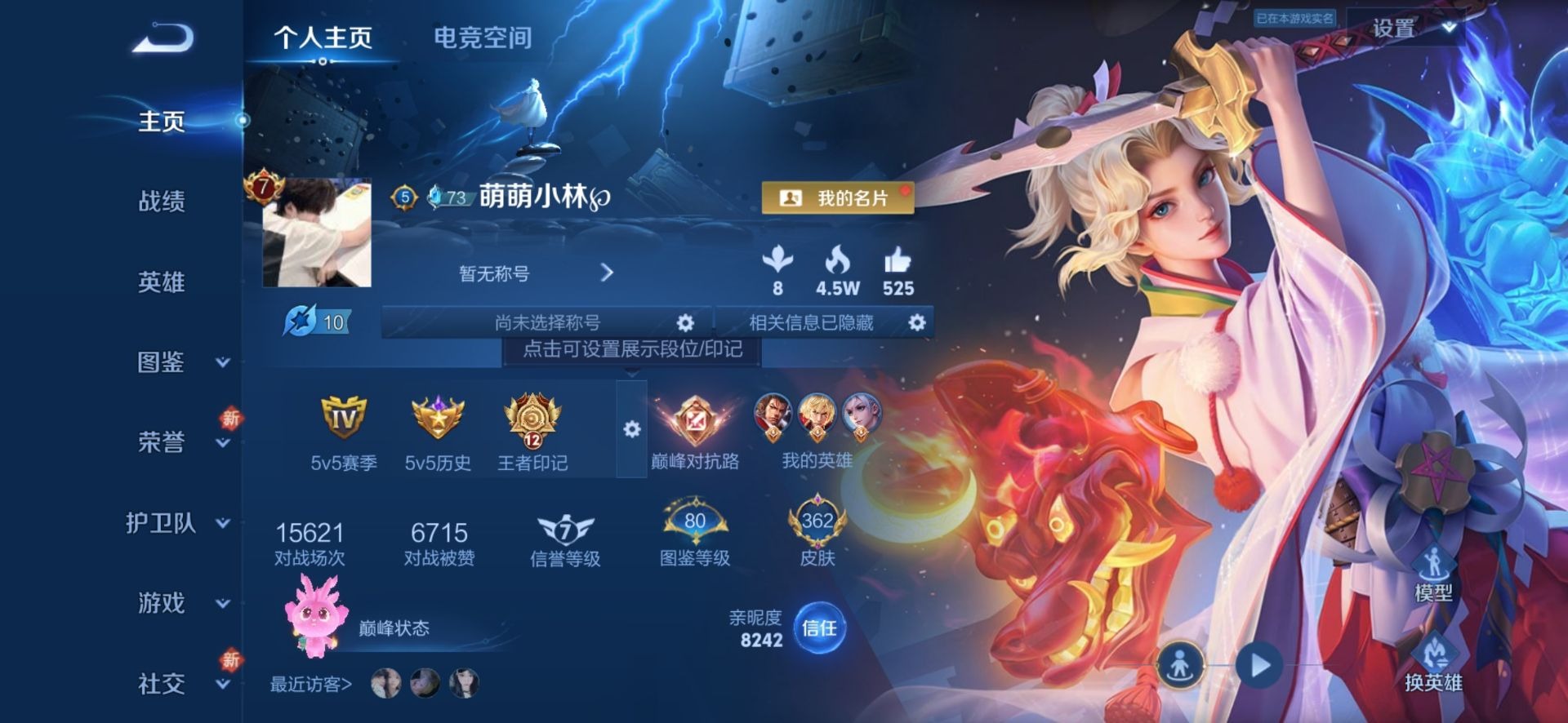 - [11708404]V8 1典藏 4珍品传说 27传说 125英雄 314皮肤 可修改实名 优质装备:九霄神辉(木兰典藏),怪盗基德,朽木白哉,黑崎一护,黄金狮子座,黄金射手座,冠军飞将,云鹰飞将(小将军),猫影幻舞,久胜战神,一念神魔,云霓雀翎,地狱火,零号·赤焰,地狱之眼,无双飞将,燃星之曲,画中仙,鹤羽星尊,澜逐花归海,诡秘之主,涂山容容 珍品传说:兔狲·蓬尾 传说皮:祥瑞亨通,幻光神枪 珍宝阁皮:万物之道,优雅恋人 限定皮:愿照·千秋盛(女娲年限),逐霄战戟,映山客,陌上桑,鸣野蒿,至尊宝,白虎志(电光耗子),魔法小厨娘,时雨天司(水龙头),神威(电光马子),飞衡(韩信年限),遇见飞天,诗剑行,五谷丰年,武圣,御风骁将(吕布年限),逐梦之星,李小龙,逐梦之影,朱雀志(守约年限),孙行者,大圣娶亲,青春决赛季,乒乒小将 史诗皮:鸭鸭历险记-刘禅,化蝶舞,星界战将,谪仙醉月,龙之律动,石田雨龙,怒海争锋,炽弈燎原,破空之剑,东方月初,埋骨钱,海诺心动手记,决胜骁骑,上官婉儿群星魔术团,蔬乡物语(鲁班七号),百相守梦-百里守约,星界特工,百相守梦-黄忠,织梦人,紫霞仙子,苍穹之光,白龙吟,特工魅影,千年之狐,永昼,江河有灵,鹤归松栖(赵怀真),真我赫兹(镜),真我赫兹(百里守约),魅语,高渐离燃音魔法,蒙恬荣光圣徽,无限星赏官,冰冠公主,白蛇,电玩·爆裂旋风,百相守梦(关羽),龙骑士(小龙虾),末日机甲-吕布,猫狗日记-孙策,时之恋人-孙尚香,乱世虎臣,节奏热浪,修罗,女仆咖啡,水果甜心,天才门将,星夜王子,功夫厨神,德古拉伯爵,暗隐猎兽者,幽灵船长,鬼剑武藏,心灵战警,乐园奇幻夜,天秀·启明,舞动绿茵,地狱岩魂,诗语江南,纤云弄巧,缤纷独角兽,乘风破浪,逐浪之夏,月团寄思,水晶猎龙者,曙光守护者,箭羽风息,金属风暴,圣诞狂欢,圣诞恋歌,鹰眼统帅,魅力维加斯,黎明之约,无心,未来纪元-赵云