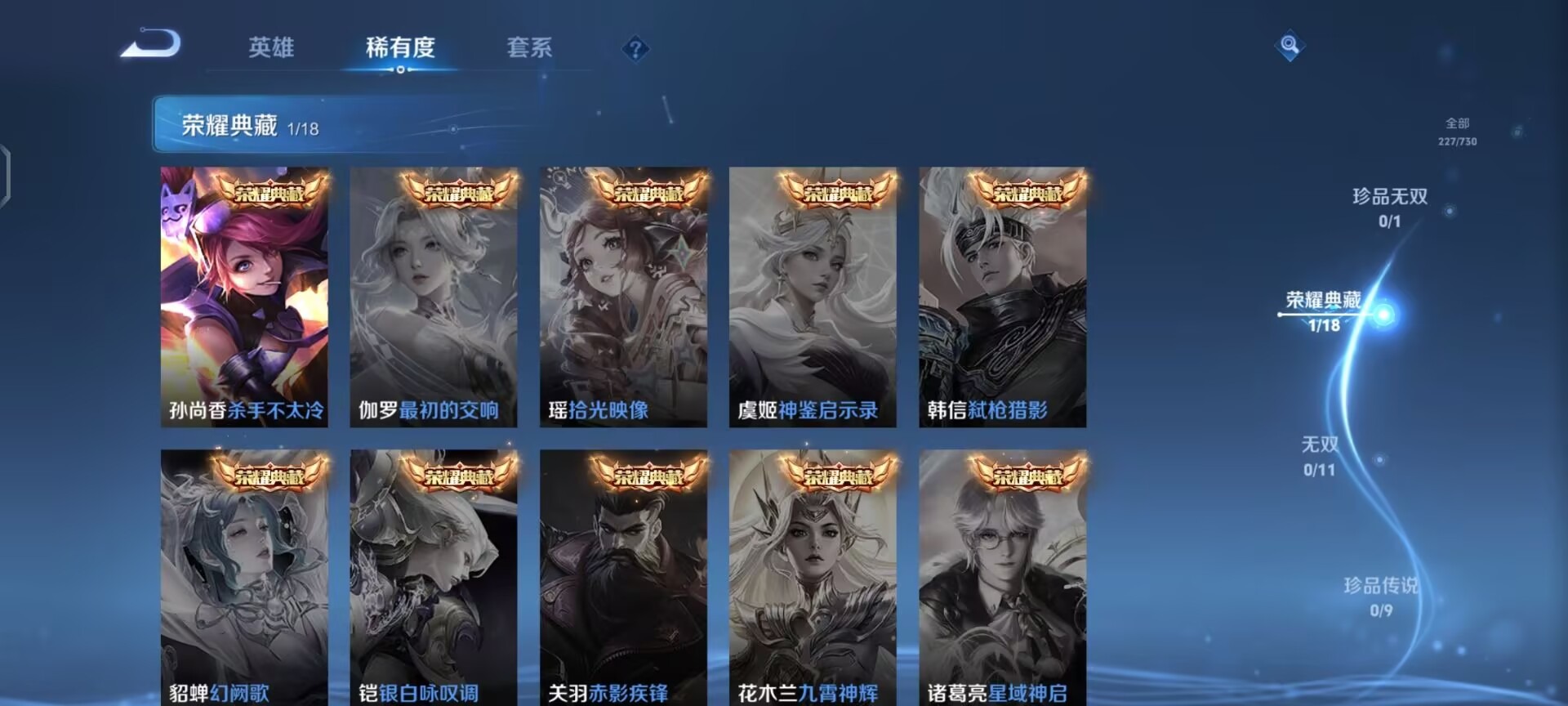 - PX_2096813-安卓Q区-可二次-贵8-123英雄-352皮肤-2典藏-18传说-108史诗-16限定-1星元-10按键-505紫星币-赤影疾锋/鸣剑·曳影/至尊宝/绝版引擎之心/原照·九州拓/幻光神枪/李逍遥/时雨天司/山海·苍雷引/鹤羽星尊/无双飞将/怒海麟威/山海·炽霜斩/武圣/凤求凰/时之恋人/白虎志/黄金射手座/启明星使/猫影幻舞/器灵·浮梦炉/山海·碧波行/山海·玄木吟/飞衡/朱