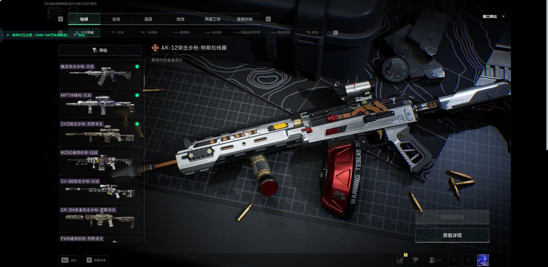 [11853495]总资产:207.6M 2干员外观 12传说枪械 哈夫币:130K 可二次 可修改实名 优质装备:顶级安全箱(3x3) 烽火地带段位:三角洲巅峰 全面战场段位:尉官 传说武器皮肤:SR-25射手步枪-水墨云图,SMG45冲锋枪-骑士,UZI冲锋枪-特斯拉线圈,M16A4突击步枪-狩猎时刻,AK-12突击步枪-特斯拉线圈,SR-3M紧凑突击步枪-特斯拉线圈,Vector冲锋枪-狩猎时刻,G3战斗步枪-狩猎时刻,M4A1突击步枪-阿米娅,CAR-15突击步枪-阿米娅,AK-12突击步枪-夜鹰,CAR-15突击步枪-黑鹰坠落 史诗武器皮肤:AUG突击步枪-甜心子弹,SR-3M紧凑突击步枪-英雄,PKM通用机枪-蝮蛇,M700狙击步枪-蝮蛇,G3战斗步枪-战场英杰,SG552突击步枪-尖端治疗,QJB201轻机枪-Old Habits,M1014霰弹枪-林中猎手,PKM通用机枪-守夜人,AS Val突击步枪-尖端治疗,M700狙击步枪-守夜人,SR-25射手步枪-尖端治疗,MP5冲锋枪-深海恐惧,勇士冲锋枪-深海恐惧,SG552突击步枪-深海恐惧,AKM突击步枪-林中猎手,.357左轮-幸运时刻,PTR-32突击步枪-Old Habits,M16A4突击步枪-竞赛选手,SV-98狙击步枪-林中猎手,PTR-32突击步枪-英雄,AS Val突击步枪-典狱官,SV-98狙击步枪-囚徒,SVD狙击步枪-暗夜猎手,SCAR-H战斗步枪-囚徒,腾龙突击步枪-无垢,MP7冲锋枪-无垢,PSG-1射手步枪-无垢,SVD狙击步枪-荒野求生,SR-3M紧凑突击步枪-荒野求生,PKM通用机枪-荒野求生,QBZ95-1突击步枪-曙光,Vector冲锋枪-阿萨拉文明,SVD狙击步枪-阿萨拉工艺,S12K霰弹枪-曙光,PKM通用机枪-英雄,M700狙击步枪-竞技风,M14射手步枪-黑鹰坠落,QSZ92G-风林火山,P90冲锋枪-紧急戒备 干员外观:无名-夜鹰,露娜-黑·天际线