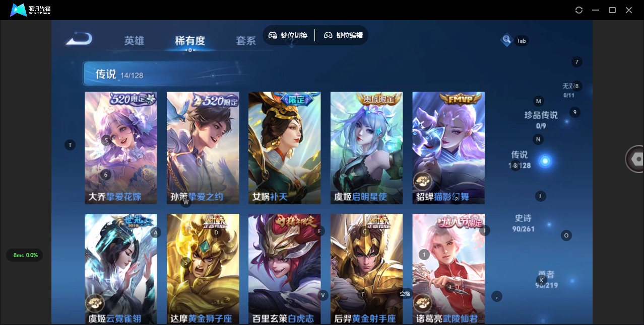 - [12226330]V8 3典藏 16传说 126英雄 329皮肤 典藏英雄武则天 可修改实名 女号 优质装备:鸣剑·曳影,全息碎影(猴子典藏),神鉴启示录,炽阳神光,一念神魔,末日机甲-孙尚香(绿蚂蚱),地狱火,仲夏夜之梦(大飞蛾),地狱之眼,淬星耀世,遇见胡旋,山海·炽霜斩(李信年限) 珍宝阁皮:万物之道,优雅恋人,玩趣恶龙 限定皮:愿照·九州拓(澜年限),逐霄战戟,陌上桑,白虎志(电光耗子),凤求凰(白切鸡),太华(伽罗年限),异界灵契(白毛香),白晶晶,时雨天司(水龙头),神威(电光马子),飞衡(韩信年限),遇见飞天,高山流水,五谷丰年,冰锋战神,游园惊梦,梁祝,御风骁将(吕布年限),烈魂,岱宗(典韦年限),天狼征服者,李小龙,逐梦之影,如梦令-后羿,纯白花嫁,孙行者,猪悟能,大圣娶亲,冰霜恋舞曲,美猴王,山海·玄木吟(马可年限) 史诗皮:器灵·浮梦炉,百相守梦-百里守约,紫霞仙子,苍穹之光,电玩小子(小书包),白龙吟,特工魅影,千年之狐,永昼,冰冠公主,偶像歌手,白蛇,晚萤,暗夜猫娘,龙骑士(小龙虾),末日机甲-吕布,猫狗日记-孙策,乱世虎臣,节奏热浪,修罗,女仆咖啡,摇滚巨星,水果甜心,绅士熊喵,天才门将,星夜王子,心灵骇客,时之奇旅-安琪拉,功夫厨神,德古拉伯爵,暗隐猎兽者,幽灵船长,鬼剑武藏,暗渊魔法,心灵战警,舞动绿茵,地狱岩魂,纤云弄巧,繁星吟游(呼啦呼啦),拒霜思,缤纷独角兽,乘风破浪,逐浪之夏,水晶猎龙者,曙光守护者,箭羽风息,金属风暴,原初追逐者,圣诞狂欢,圣诞恋歌,鹰眼统帅,暗夜贵公子,魅力维加斯,黎明之约,无心,未来纪元-赵云