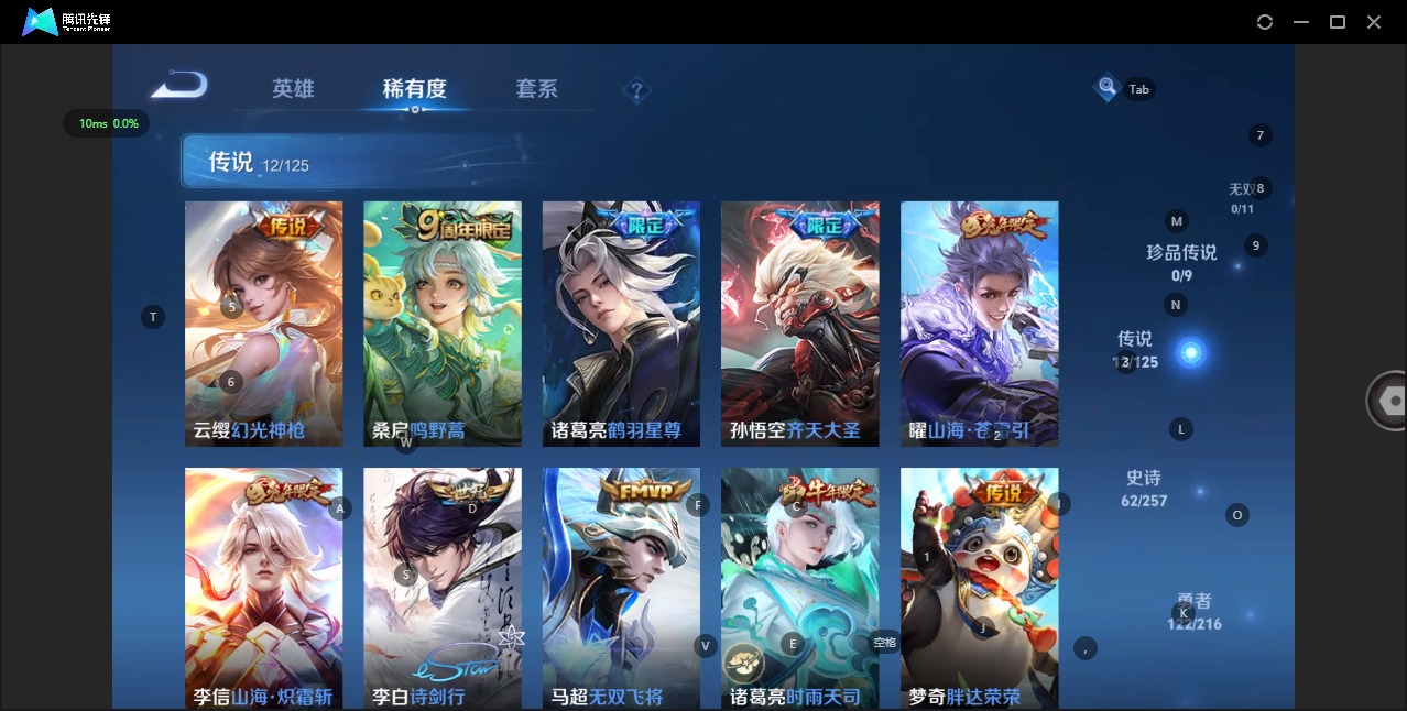 - [11882861]V8 1典藏 7传说 124英雄 274皮肤 可修改实名 优质装备:大秦宣太后,一念神魔,云霓雀翎,地狱火,零号·赤焰,地狱之眼 珍宝阁皮:女武神,玩趣恶龙 限定皮:至尊宝,神威(电光马子),飞衡(韩信年限),高山流水,诗剑行,降魔,五谷丰年,冰锋战神,梁祝,岱宗(典韦年限),天狼溯光者,天狼征服者,奔雷神使(牛魔年限),李小龙,默契交锋-花木兰,大圣娶亲,冰霜恋舞曲 史诗皮:白龙吟,黄金分割率,特工魅影,千年之狐,永昼,魅语,百解令(蒙犽),青蛇,偶像歌手,暗夜猫娘,龙骑士(小龙虾),末日机甲-吕布,时之恋人-孙尚香,乱世虎臣,节奏热浪,女仆咖啡,摇滚巨星,水果甜心,天才门将,星夜王子,心灵骇客,功夫厨神,德古拉伯爵,暗隐猎兽者,幽灵船长,鬼剑武藏,地狱岩魂,纤云弄巧,繁星吟游(呼啦呼啦),拒霜思,缤纷独角兽,乘风破浪,逐浪之夏,水晶猎龙者,曙光守护者,金属风暴,圣诞狂欢,圣诞恋歌,鹰眼统帅,魅力维加斯,黎明之约,无心,未来纪元-赵云