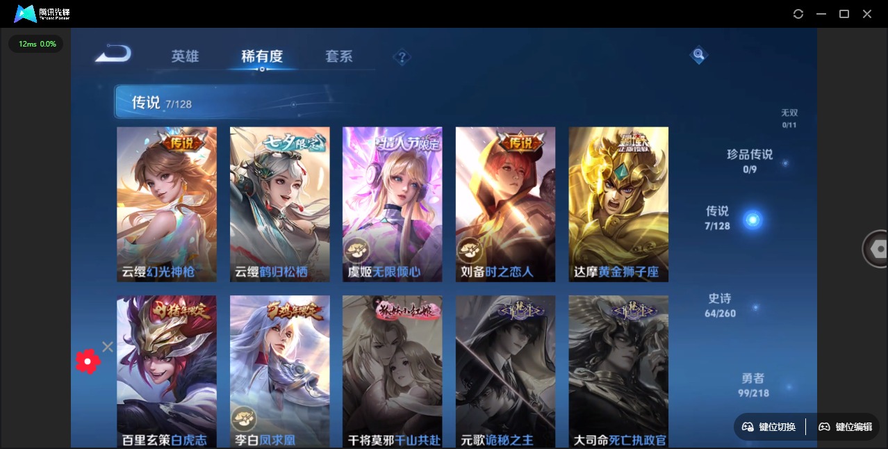 [11853772]V7 7传说 124英雄 222皮肤 可修改实名 优质装备:黄金狮子座,时之恋人-刘备(电焊工),鹤归松栖(云缨),涂山容容 传说皮:幻光神枪 珍宝阁皮:玩趣恶龙 限定皮:至尊宝,白虎志(电光耗子),凤求凰(白切鸡),飞衡(韩信年限),无限倾心-虞姬,五谷丰年,梁祝,天狼狩猎者,龙胆,烈魂,天狼绘梦者,李小龙,如梦令-后羿,大圣娶亲,山海·玄木吟(马可年限) 史诗皮:化蝶舞,百相守梦-周瑜,紫霞仙子,黄金分割率,特工魅影,千年之狐,永昼,江河有灵,鹤归松栖(赵怀真),暗夜猫娘,末日机甲-吕布,猫狗日记-孙策,猫狗日记-大乔,乱世虎臣,修罗,女仆咖啡,水果甜心,天才门将,星夜王子,功夫厨神,德古拉伯爵,鬼剑武藏,舞动绿茵,地狱岩魂,繁星吟游(呼啦呼啦),乘风破浪,逐浪之夏,水晶猎龙者,曙光守护者,唤灵魅影,金属风暴,原初追逐者,圣诞恋歌,鹰眼统帅,魅力维加斯,无心,未来纪元-赵云,玫瑰异探