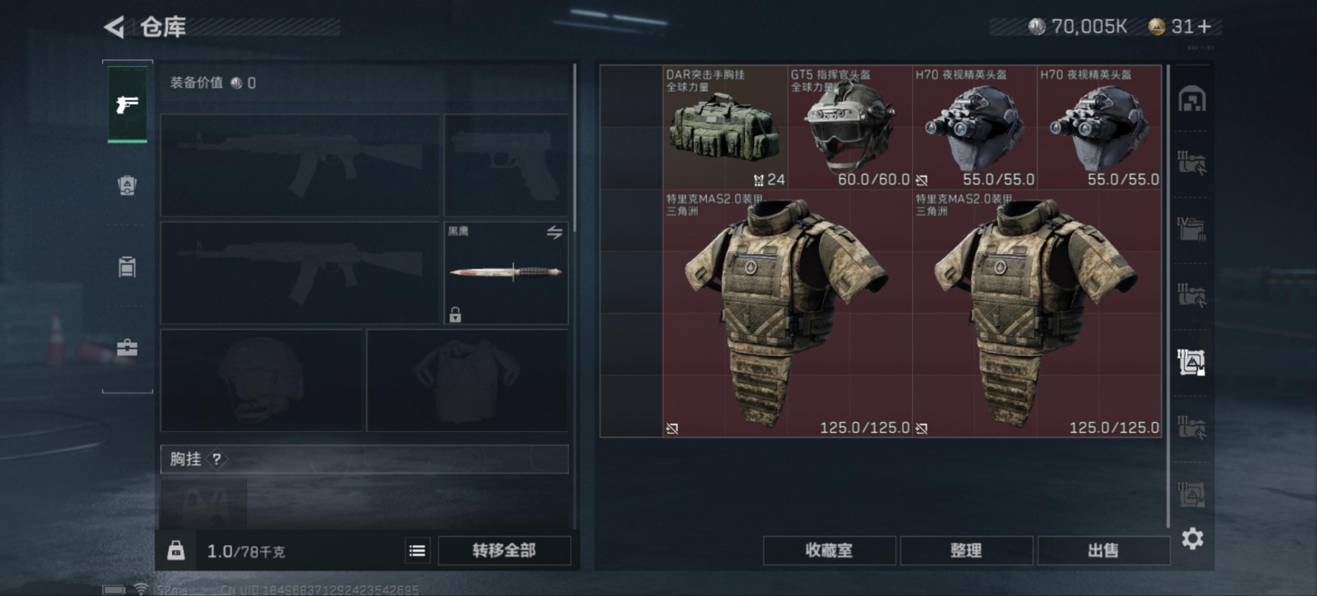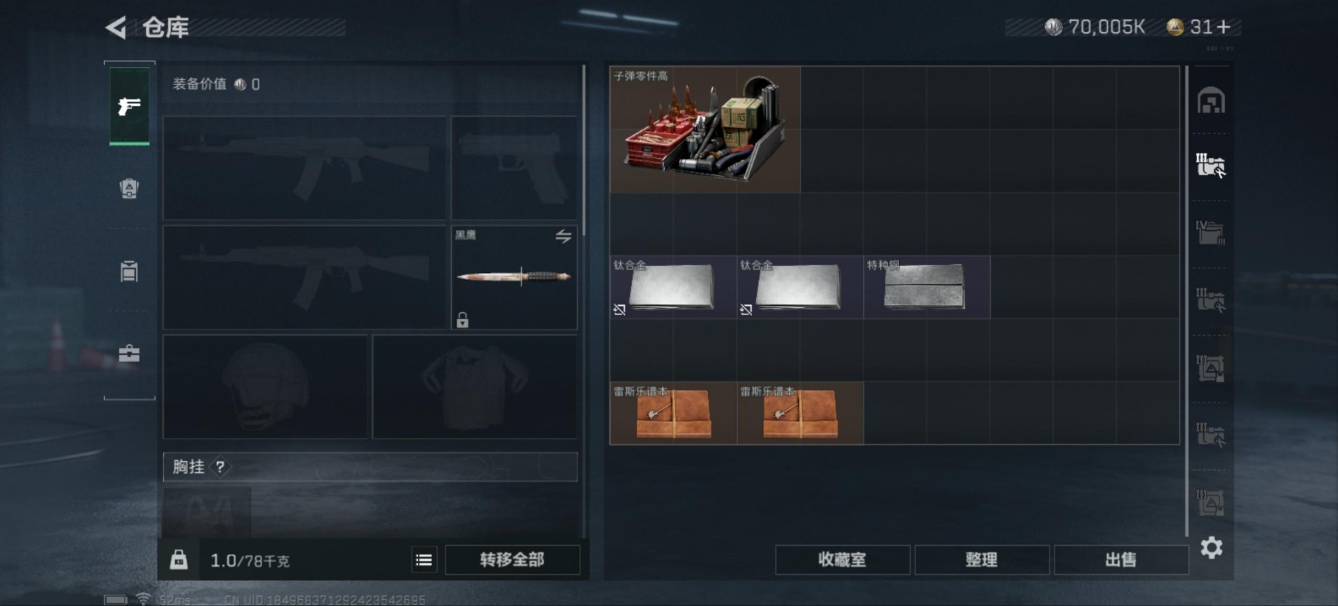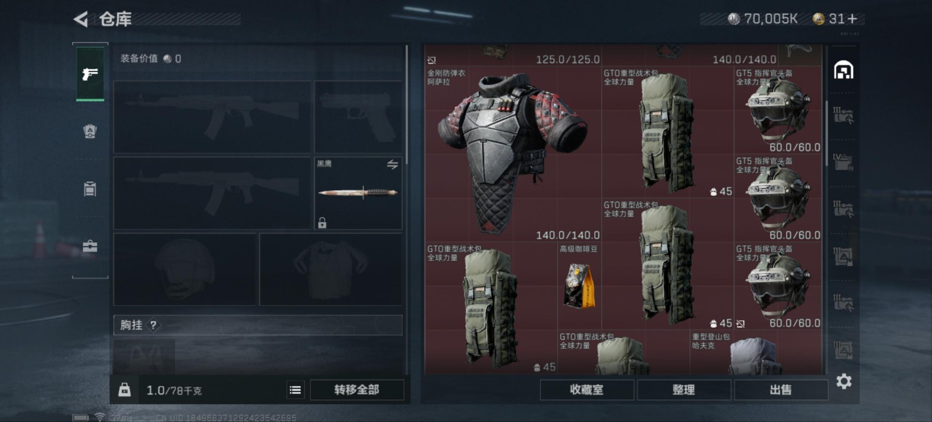 [11854020]总资产:138.5M 5传说枪械 哈夫币:70.005K 可二次 可修改实名 烽火地带段位:黄金 全面战场段位:上等兵 传说武器皮肤:M16A4突击步枪-狩猎时刻,勇士冲锋枪-能天使-午夜邮差,Vector冲锋枪-狩猎时刻,G3战斗步枪-狩猎时刻,复合弓-黑-天际线