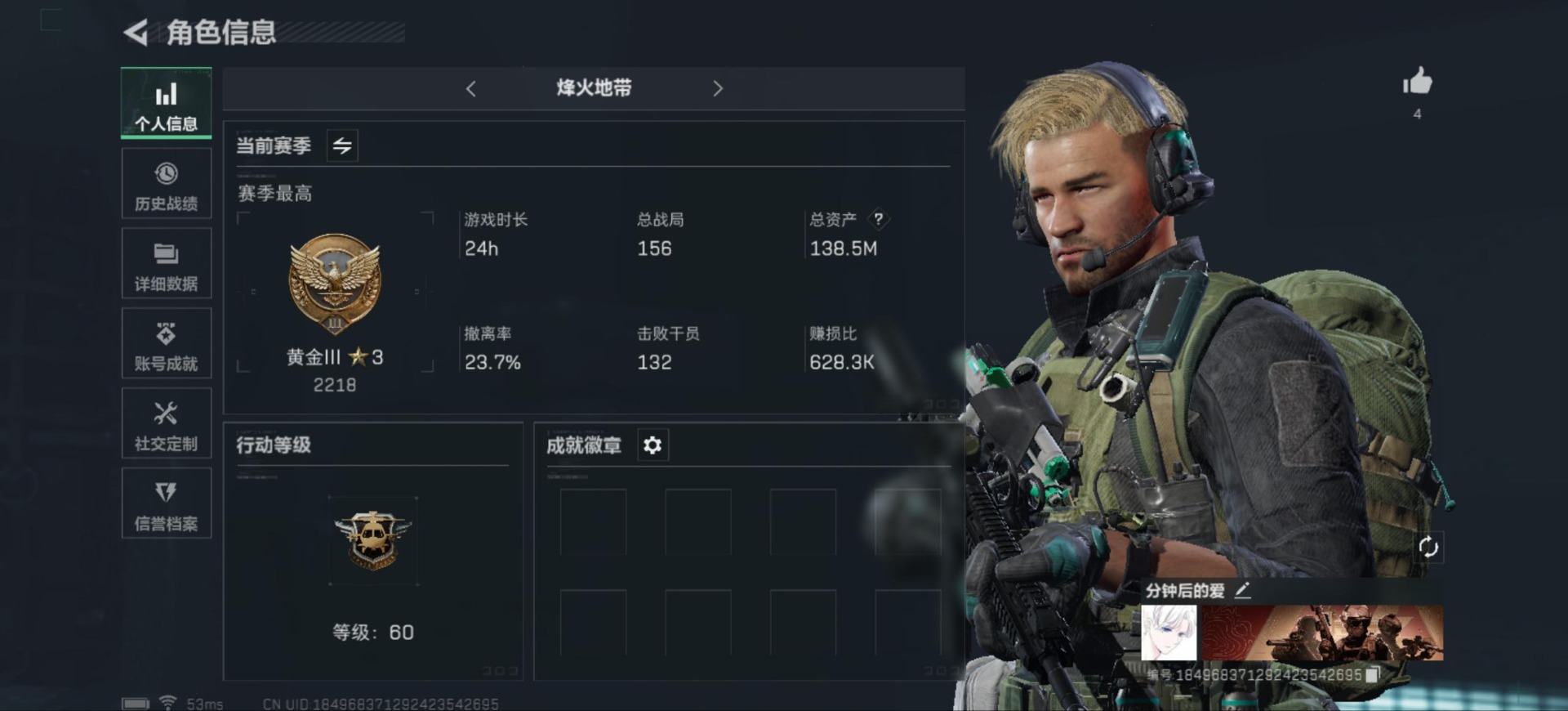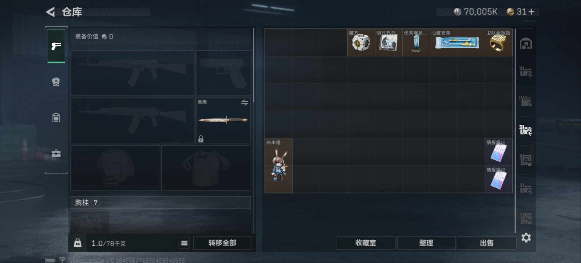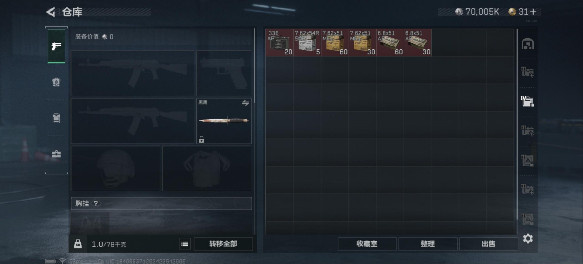 [11854020]总资产:138.5M 5传说枪械 哈夫币:70.005K 可二次 可修改实名 烽火地带段位:黄金 全面战场段位:上等兵 传说武器皮肤:M16A4突击步枪-狩猎时刻,勇士冲锋枪-能天使-午夜邮差,Vector冲锋枪-狩猎时刻,G3战斗步枪-狩猎时刻,复合弓-黑-天际线