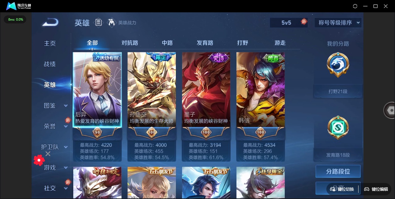 - [12025137]V8 1典藏 17传说 125英雄 245皮肤 可修改实名 优质装备:九霄神辉(木兰典藏),黄金狮子座,冠军飞将,云鹰飞将(小将军),久胜战神,末日机甲-孙尚香(绿蚂蚱),地狱火,仲夏夜之梦(大飞蛾),零号·赤焰,山海·炽霜斩(李信年限) 传说皮:祥瑞亨通 珍宝阁皮:万物之道,女武神 限定皮:愿照·九州拓(澜年限),鸣野蒿,凤求凰(白切鸡),神威(电光马子),飞衡(韩信年限),瑞麟志(木兰年限),五谷丰年,梁祝,天狼狩猎者,岱宗(典韦年限),天狼征服者,天狼绘梦者,李小龙,永曜之星,天魔缭乱,深海之息(深海大菠萝) 史诗皮:百相守梦-百里守约,紫霞仙子,苍穹之光,黄金分割率,千年之狐,魅语,无限星赏官,冰冠公主,乱世虎臣,节奏热浪,修罗,女仆咖啡,摇滚巨星,水果甜心,天才门将,星夜王子,心灵骇客,功夫厨神,暗隐猎兽者,幽灵船长,鬼剑武藏,心灵战警,天秀·启明,舞动绿茵,地狱岩魂,纤云弄巧,缤纷独角兽,乘风破浪,逐浪之夏,月团寄思,水晶猎龙者,曙光守护者,箭羽风息,金属风暴,原初追逐者,圣诞狂欢,圣诞恋歌,鹰眼统帅,暗夜贵公子,魅力维加斯,黎明之约,赏金猎手,奇遇舞章,天秀·音浪,无心,未来纪元-赵云