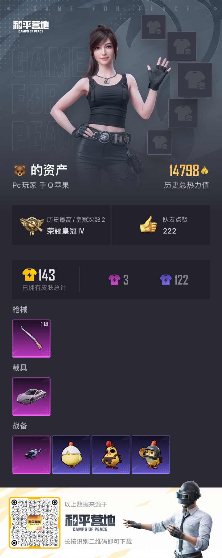 - PX_2093489- 苹果手Q-3王牌印记-4粉装-13特效枪-2载具-49099热力值-83套装-145枪皮-0卓越印记-0传奇印记 【4粉装】,梦幻火箭,第五大道,绯穹魔姬,时空协奏·回响 【13特效枪】AKM-幽焰骑士-3级 SCAR-L-纯梦嫁纱-4级 M416-墨龙九天-3级 M416-心之恋语-4级 GROZA-镜光银凌-5级 AUG-暖羊咩咩-5级 AUG-许七安-4级 M762-