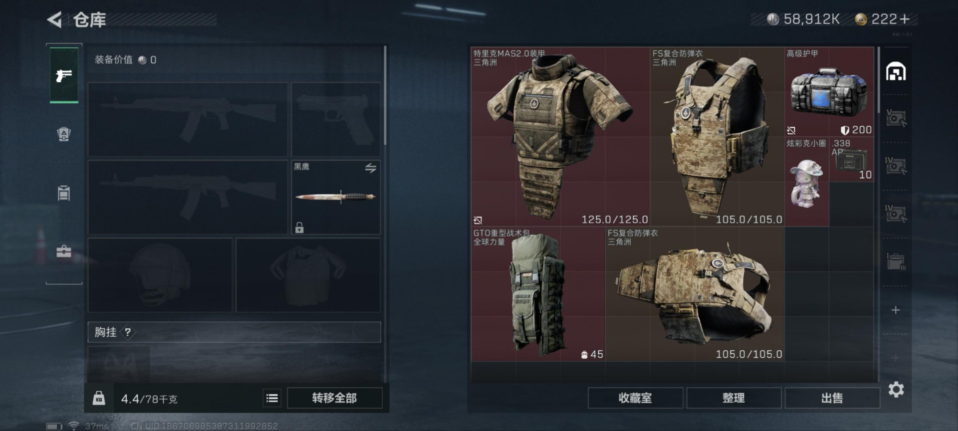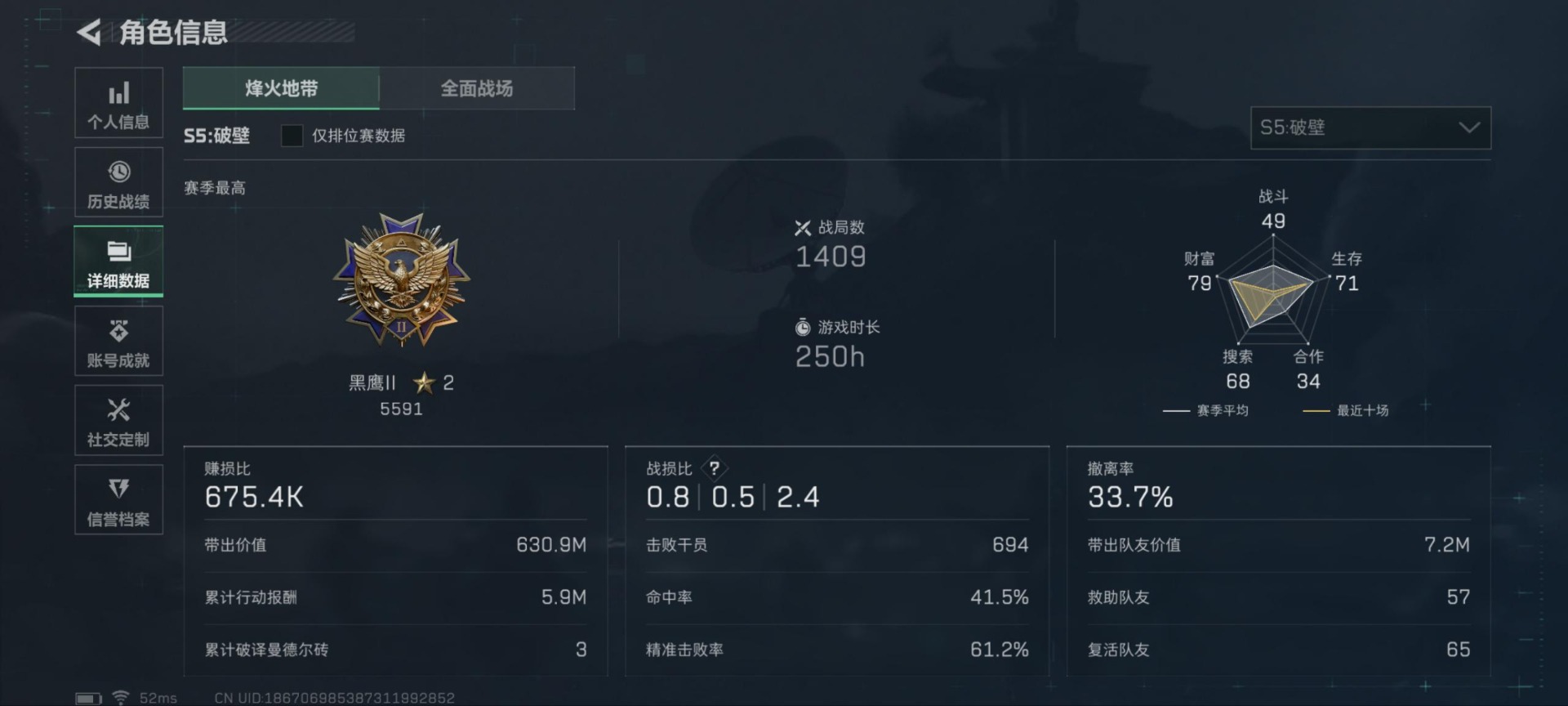 - [11680527]总资产:126.9M 4干员外观 1近战传说 6传说枪械 哈夫币:12.005K 可二次 可修改实名 优质装备:近战-黑海 烽火地带段位:无段位 全面战场段位:无段位 传说武器皮肤:SMG45冲锋枪-骑士,725双管霰弹枪-送葬人-无题密令,AK-12突击步枪-夜鹰,M4A1突击步枪-蚀金玫瑰,MP5冲锋枪-黑海 史诗武器皮肤:PKM通用机枪-蝮蛇,AUG突击步枪-蝮蛇,G3战斗步枪-战场英杰,SG552突击步枪-尖端治疗,PKM通用机枪-守夜人,Ash-12战斗步枪-守夜人,MP5冲锋枪-深海恐惧,AKM突击步枪-林中猎手,M16A4突击步枪-竞赛选手,PKM通用机枪-荒野求生,Vector冲锋枪-阿萨拉文明,S12K霰弹枪-曙光 干员外观:红狼-蚀金玫瑰,骇爪-水墨云图,无名-夜鹰,威龙-飞虎