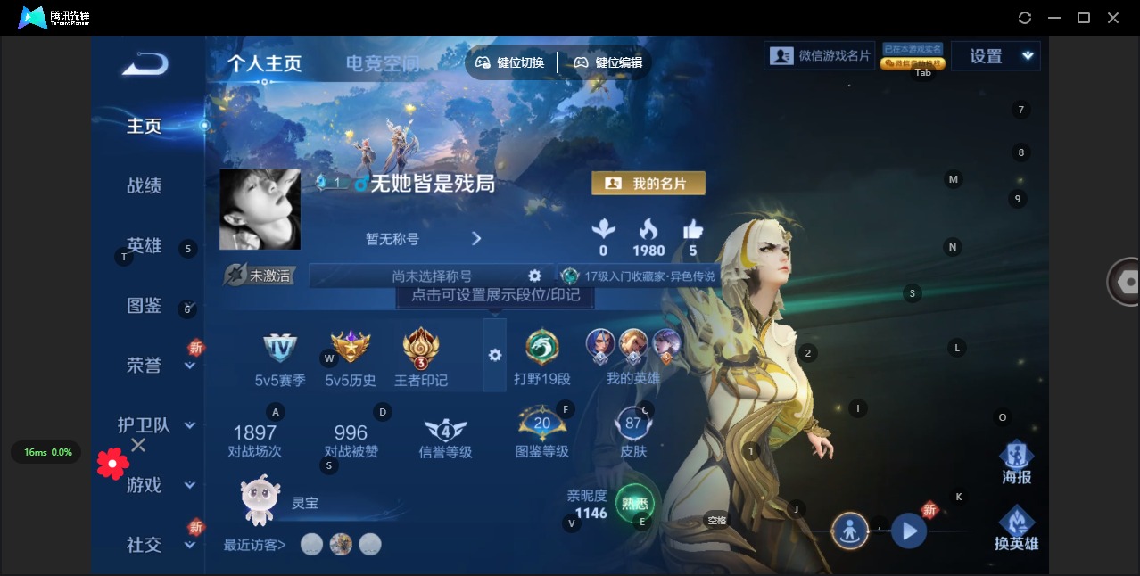 - [11414331]V7 1典藏 2珍品传说 16传说 125英雄 242皮肤 可修改实名 优质装备:鸣剑·曳影,江户川柯南,怪盗基德,一念神魔,仲夏夜之梦(大飞蛾),胖达荣荣,超时空战士-狄仁杰 传说皮:星之鸣奏,祥瑞亨通,幻光神枪 珍宝阁皮:妄想食味,蔷薇恋人 限定皮:愿照·九州拓(澜年限),愿照·福禄聚(蔡文姬年限),愿照·岁时盈(虞姬年限),愿照·山河定(司空震年限),愿照·众生和(妲己年限),愿照·千秋盛(女娲年限),逐霄战戟,鸣野蒿,异界灵契(白毛香),傲雪梅枪,绯月行,神威(电光马子),高山流水,五谷丰年,梁祝,岱宗(典韦年限),李小龙,孙行者,玉兔公主 史诗皮:狼魂孤将,化蝶舞,星界战将,茶境仙,破空之剑,芈月浮光幕影,琥珀纪元伽罗,上官婉儿群星魔术团,百相守梦-百里守约,紫霞仙子,千年之狐,江河有灵,百解令(蒙犽),高渐离燃音魔法,冰冠公主,暗夜猫娘,猫狗日记-孙策,乱世虎臣,修罗,女仆咖啡,水果甜心,天才门将,星夜王子,心灵骇客,时之奇旅-安琪拉,暗隐猎兽者,幽灵船长,鬼剑武藏,乐园奇幻夜,舞动绿茵,纤云弄巧,繁星吟游(呼啦呼啦),拒霜思,乘风破浪,逐浪之夏,水晶猎龙者,金属风暴,原初追逐者,圣诞狂欢,圣诞恋歌,鹰眼统帅,魅力维加斯,未来纪元-赵云