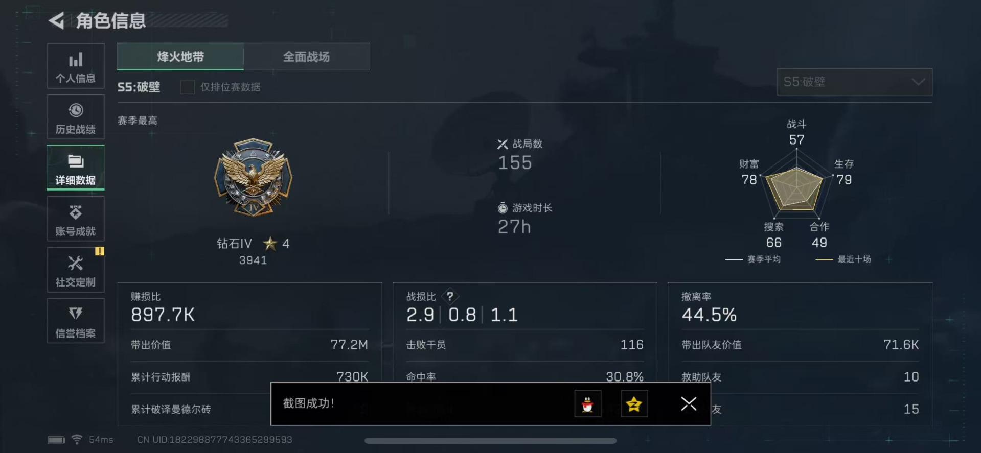 - [11530083]总资产:197.1M 4干员外观 2近战传说 17传说枪械 哈夫币:730.067K 顶级安全箱(3×3)9.15号到期 可二次 可修改实名 优质装备:近战-黑海,近战-北极星,顶级安全箱(3x3) 烽火地带段位:三角洲巅峰 全面战场段位:上等兵 传说武器皮肤:AK-12突击步枪-夜鹰,M4A1突击步枪-阿米娅,CAR-15突击步枪-阿米娅,复合弓-黑-天际线,AWM狙击步枪-捞点薯条,QCQ171冲锋枪-北极星,腾龙突击步枪-捞点薯条,93R-捞点薯条,AK-12突击步枪-特斯拉线圈,SR-3M紧凑突击步枪-特斯拉线圈,UZI冲锋枪-特斯拉线圈,勇士冲锋枪-能天使-午夜邮差,725双管霰弹枪-送葬人-无题密令,K437突击步枪-北极星,Vector冲锋枪-能天使-午夜邮差 史诗武器皮肤:AUG突击步枪-蝮蛇,M700狙击步枪-蝮蛇,Ash-12战斗步枪-守夜人,M16A4突击步枪-竞赛选手,PKM通用机枪-守夜人,AS Val突击步枪-尖端治疗,M700狙击步枪-守夜人,SG552突击步枪-尖端治疗,SR-25射手步枪-尖端治疗,PKM通用机枪-荒野求生,勇士冲锋枪-深海恐惧,AKM突击步枪-林中猎手,SR-3M紧凑突击步枪-荒野求生,M1014霰弹枪-林中猎手,SV-98狙击步枪-林中猎手,PTR-32突击步枪-英雄,SVD狙击步枪-荒野求生,SV-98狙击步枪-囚徒,腾龙突击步枪-无垢,MP7冲锋枪-无垢,PSG-1射手步枪-无垢,沙漠之鹰-曙光 干员外观:无名-夜鹰,蜂医-送葬人·无题密令(S5),露娜-黑·天际线,蛊-能天使·午夜邮差