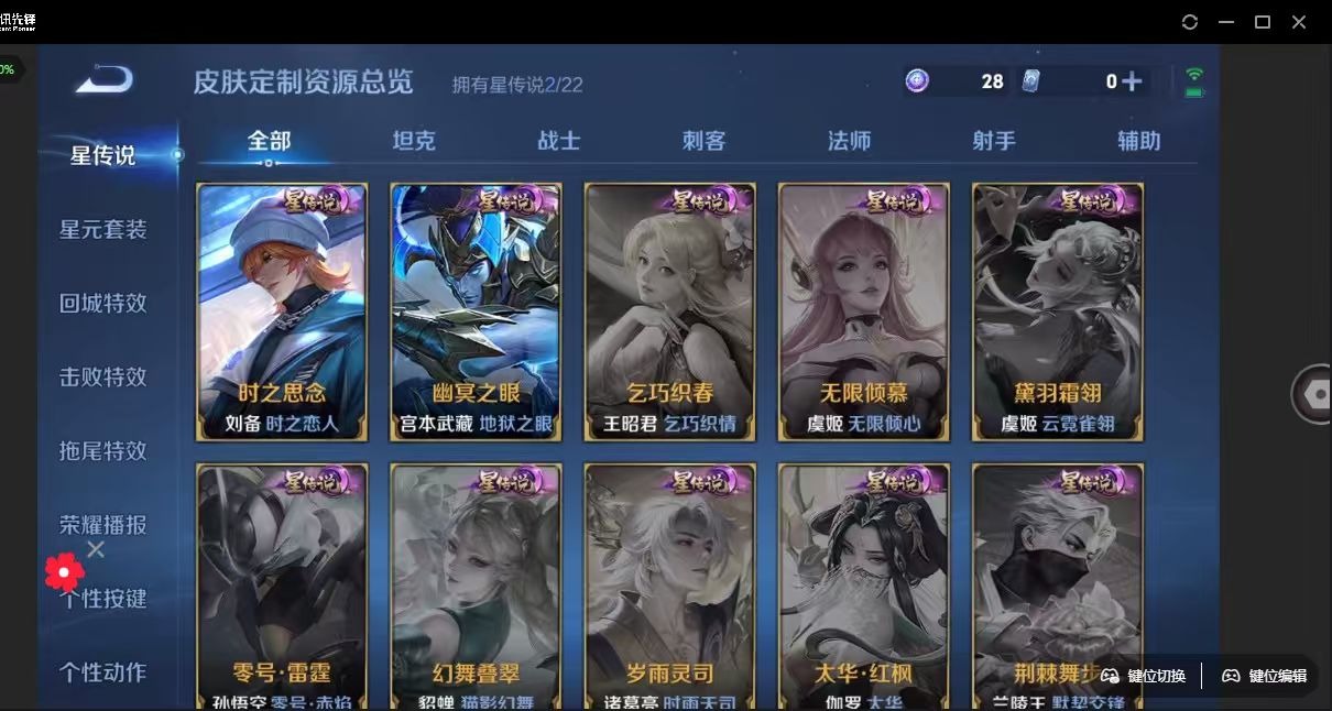- PX_2080884-99 安卓QQ/永恒钻石/166皮肤/124英雄/0典藏/0珍品无双/0无双/3珍品传说/12传说/49史诗/8稀有英雄 【3 珍品传说】酷洛米之心 安琪拉,大耳狗之梦 瑶,时之奇旅 孙策, 【12 传说皮肤】云鹰飞将 曜,诗剑行 李白,浮生妄 夏洛特,鹤羽星尊 诸葛亮,炽阳神光 镜,黄金狮子座 达摩,久胜战神 干将莫邪,愿照·九州拓 澜,幻光神枪 云缨,愿照·岁时盈 虞姬,
